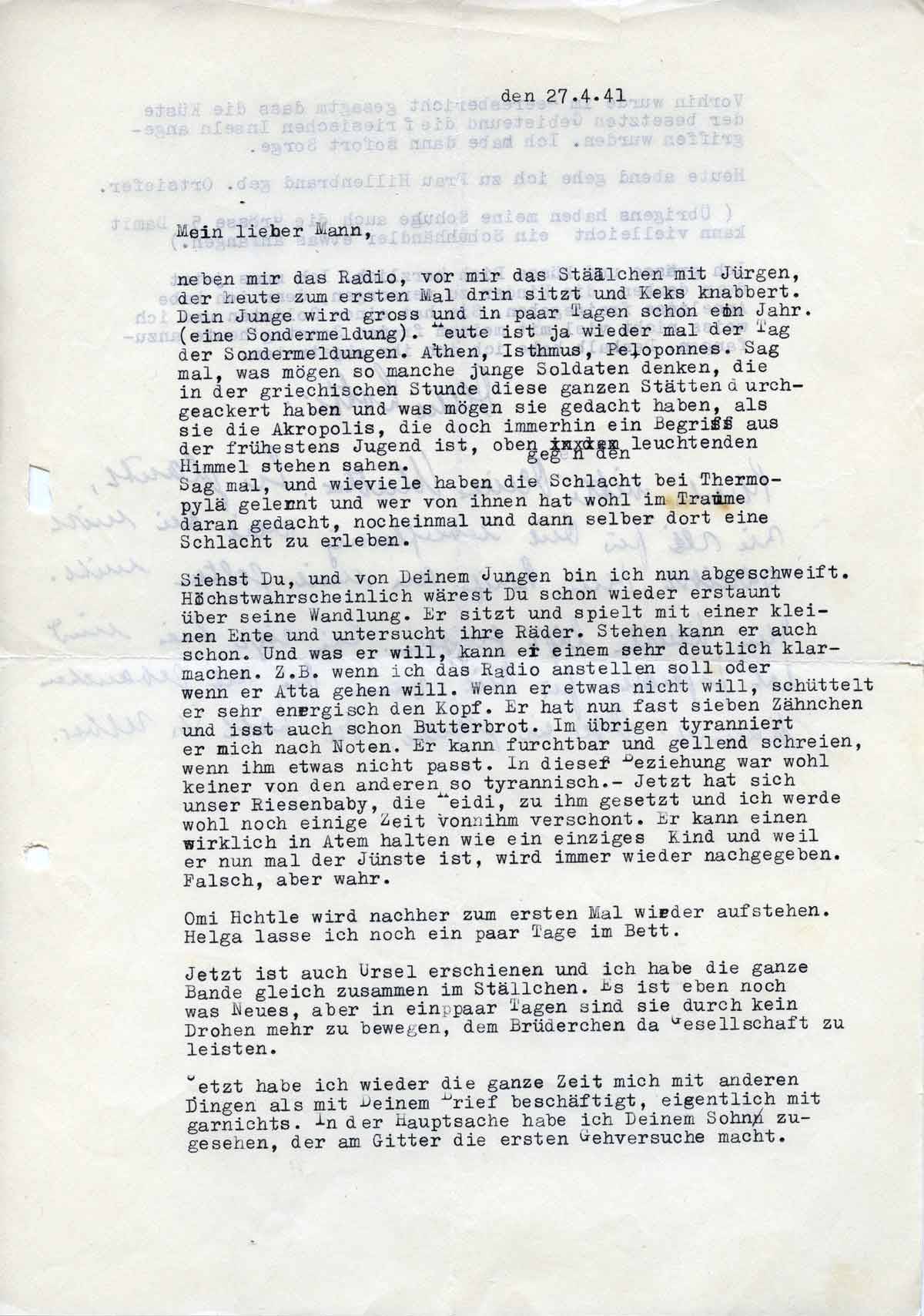 Charlotte Endemann an ihren Mann Harald, 27. April 1941