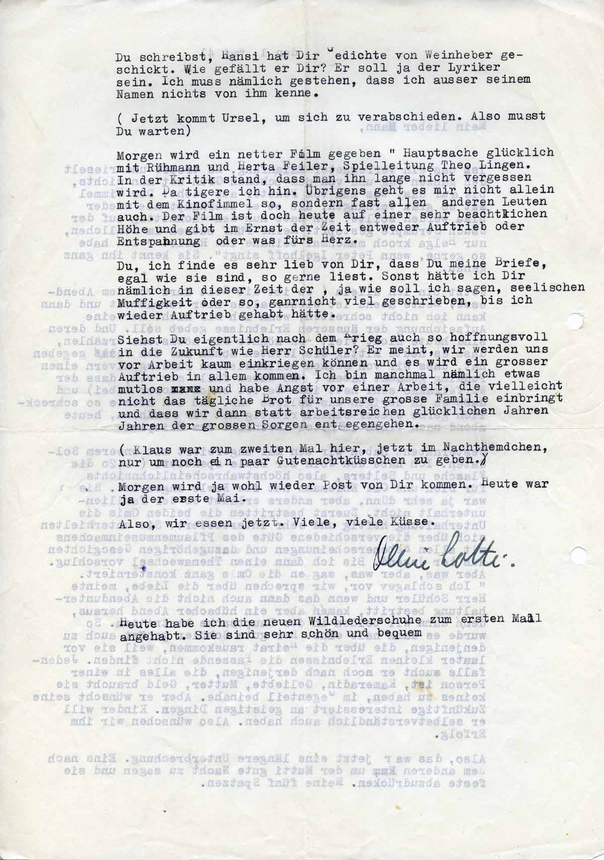 - Also, wir essen jetzt. Viele, viele Küsse, Deine Lotti