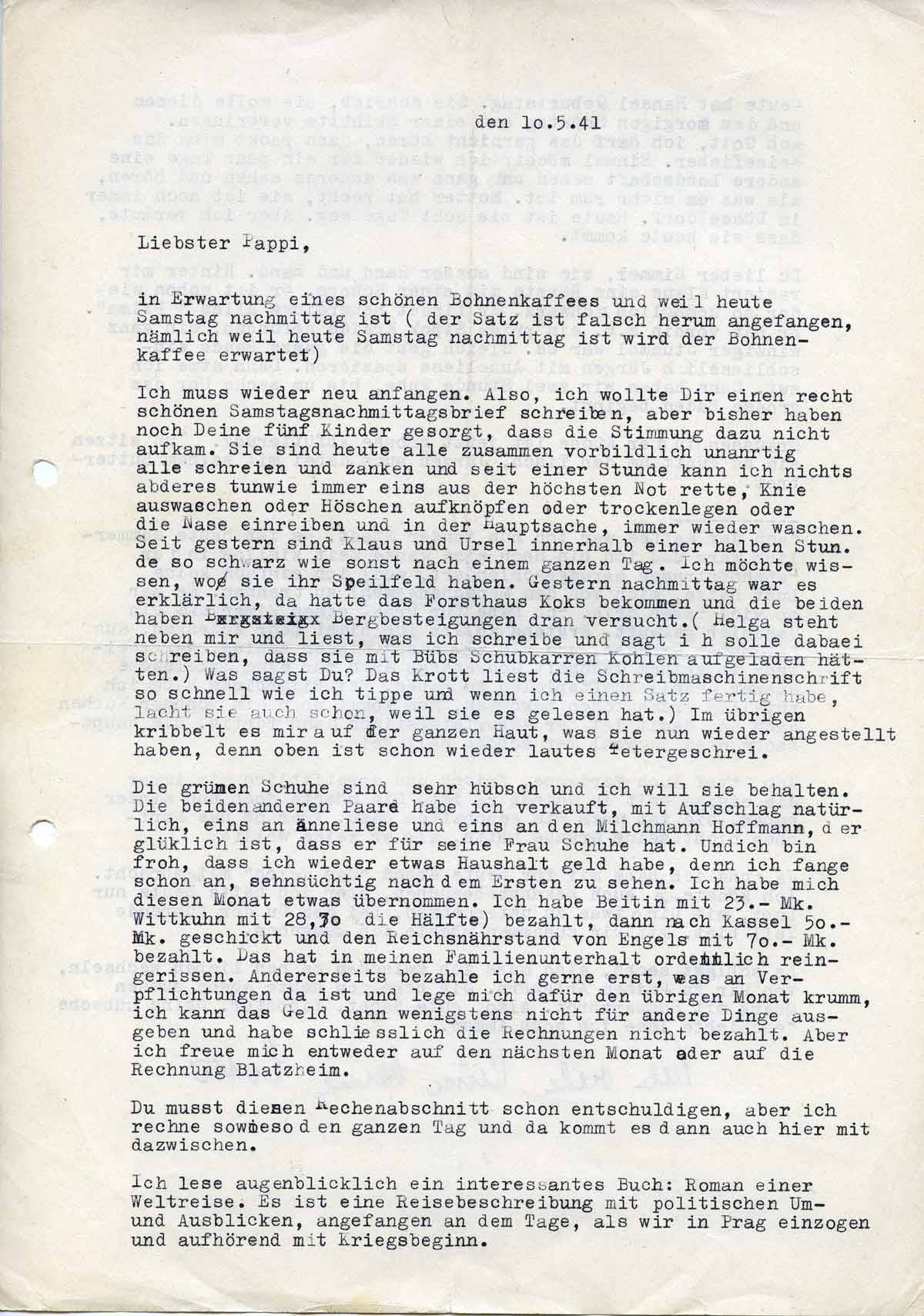Charlotte Endemann an ihren Mann Harald, 10. Mai 1941