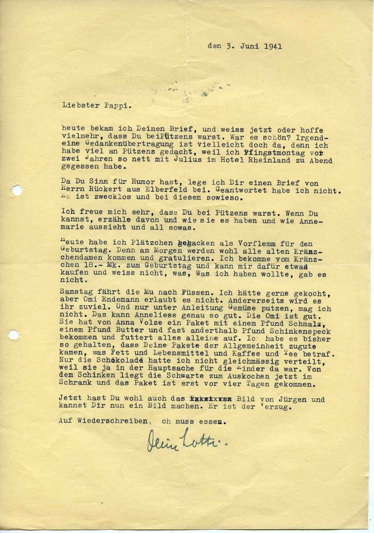 Charlotte Endemann an ihren Mann Harald, 3. Juni 1941