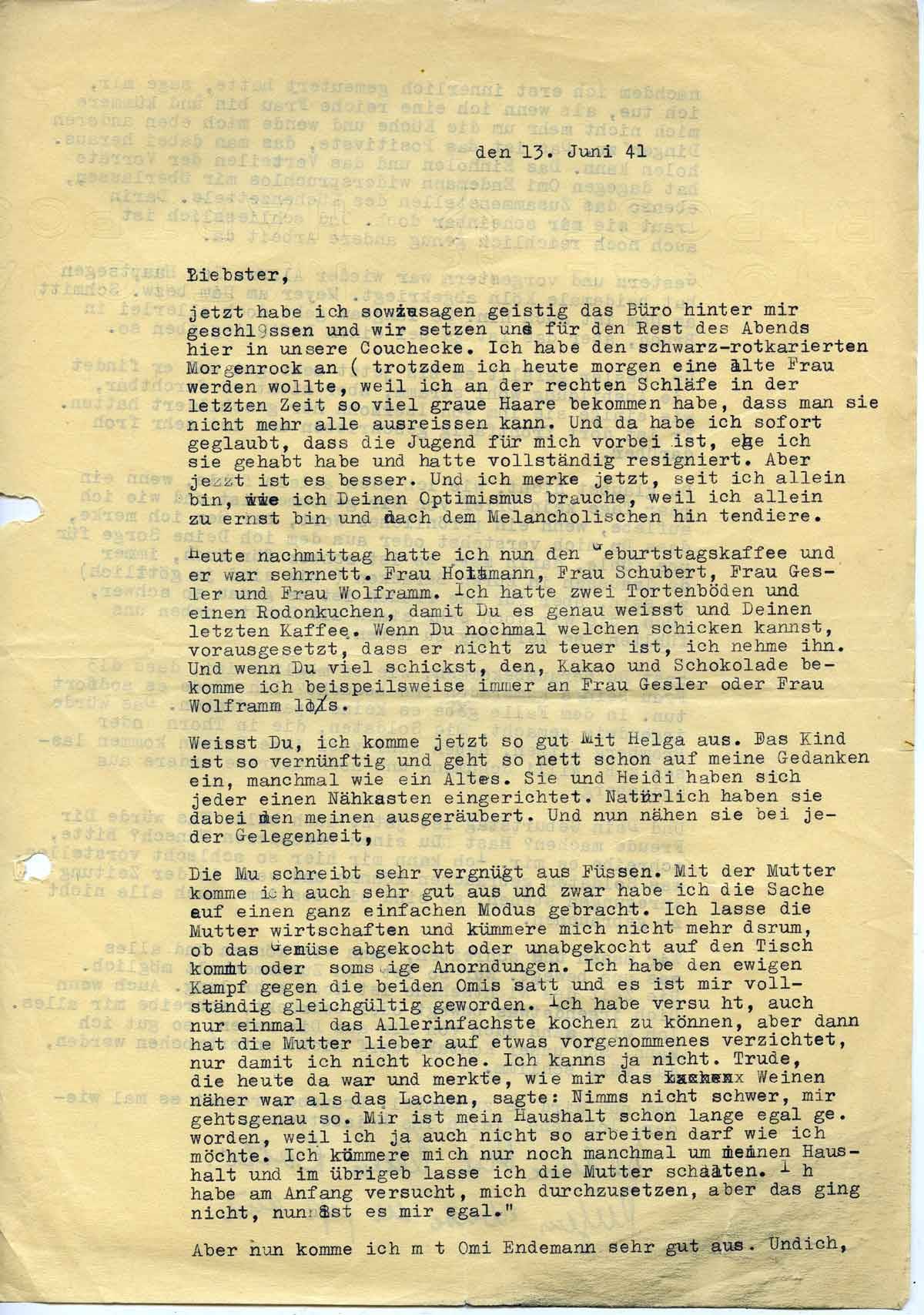 Charlotte Endemann an ihren Mann Harald, 13. Juni 1941