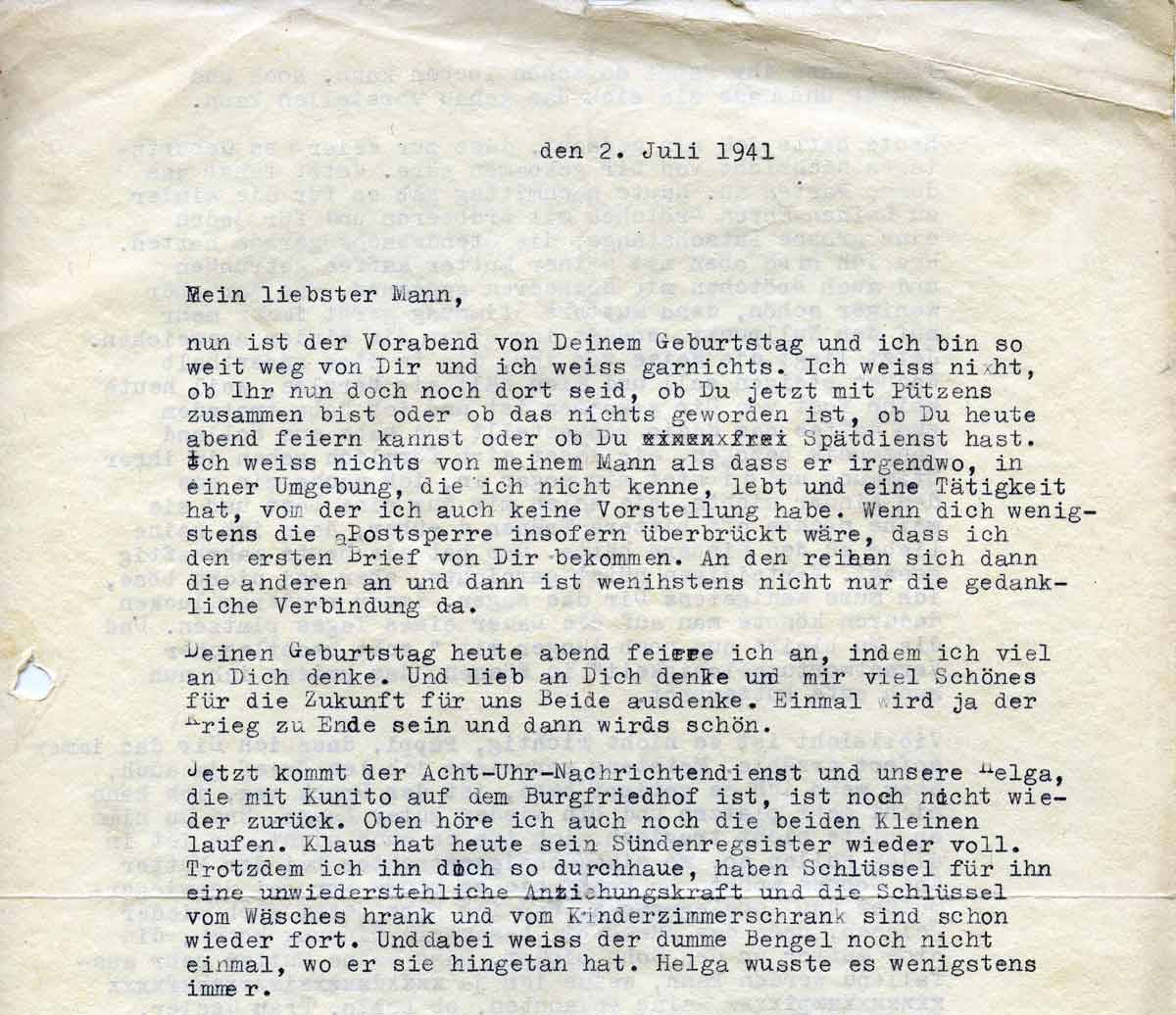 Charlotte Endemann an ihren Mann Harald, 2. Juli 1941