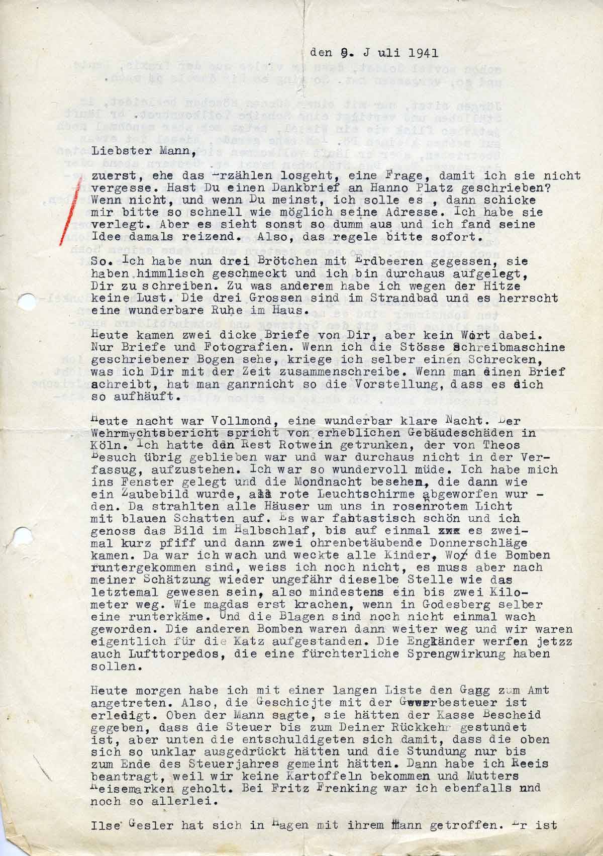 Charlotte Endemann an ihren Mann Harald, 8. Juli 1941