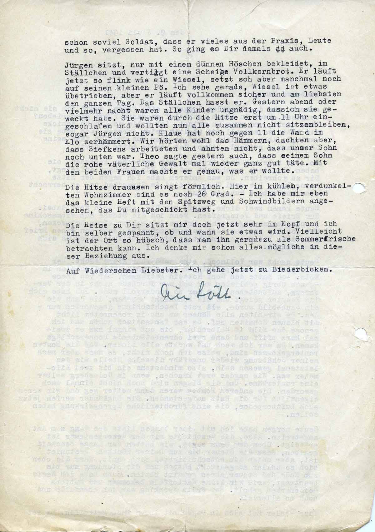 Auf Wiedersehen Liebster. Ich gehe jetzt zu Biederbicken. Dein Lött.