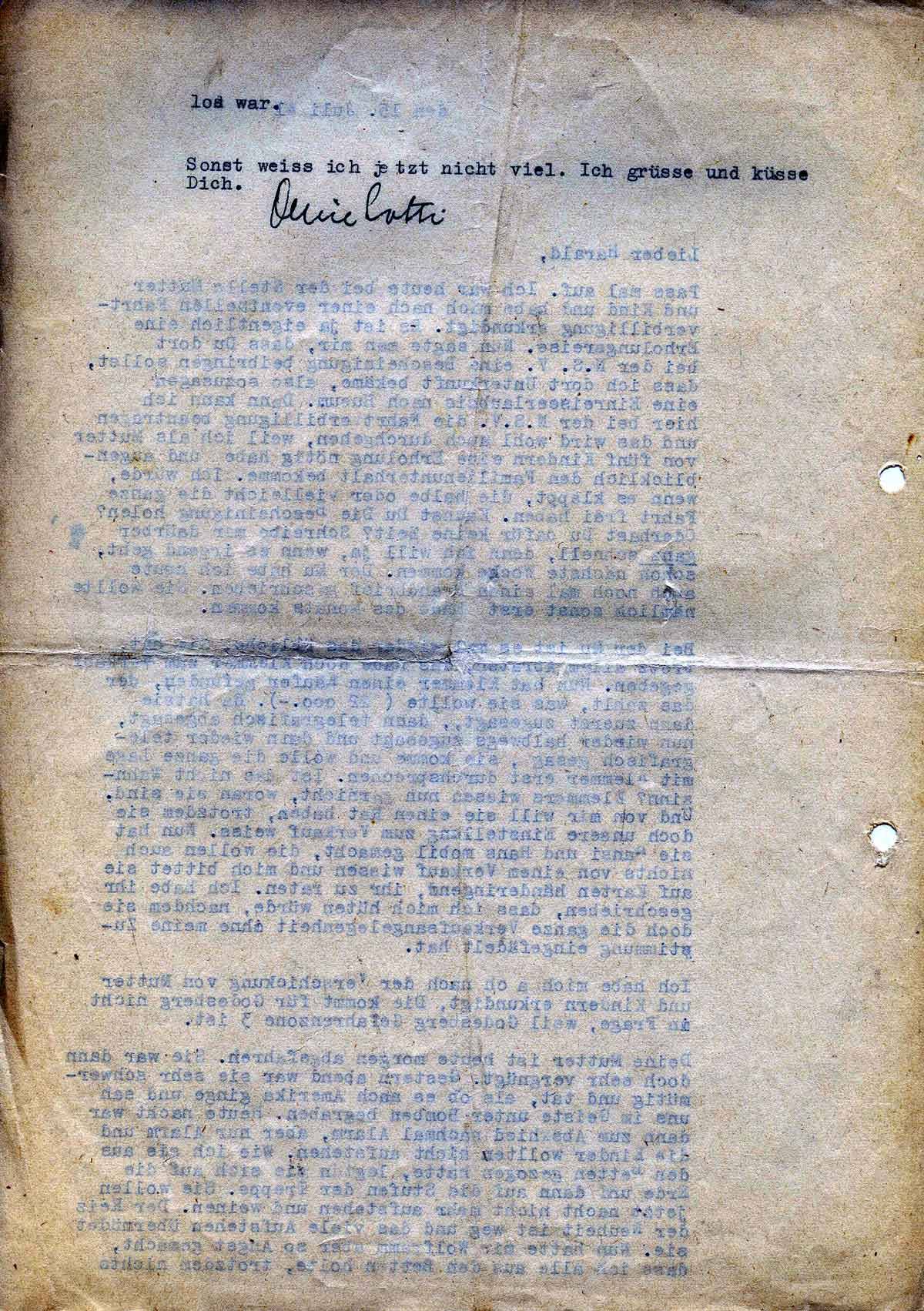 Bei der Mu ist es wieder das übliche. Sie hat, trotz allem Abraten, das Haus doch Klemmer zum Verkauf gegeben. Nun hat Klemmer einen Käufer gefunden, der zahlt, was sie wollte (22.000.- Mk.) Da hat sie dann zuerst zugesagt, dann telegrafisch abgesagt, nun wieder halbwegs zugesagt und dann wieder telegrafiert, sie komme und wolle die ganze Sache mit Keller nochmal durchsprechen. Ist das nicht Wahnsinn? Klemmer weiß nun gar nicht, woran er ist. Und von mir will sie einen Rat haben, trotzdem sie doch unsere Einstellung zum Verkauf weiss. Nun hat sie Hans und Hansi mobil gemacht. Die wollen auch nichts von einem Verkauf wissen und mich bittet sie auf Karten händedringend, ihr zu raten. Ich habe ihr geschrieben, dass ich mich hüten würde, nachdem sie doch die ganze Verkaufsangelegenheit ohne meine Zustimmung eingefädelt hat.