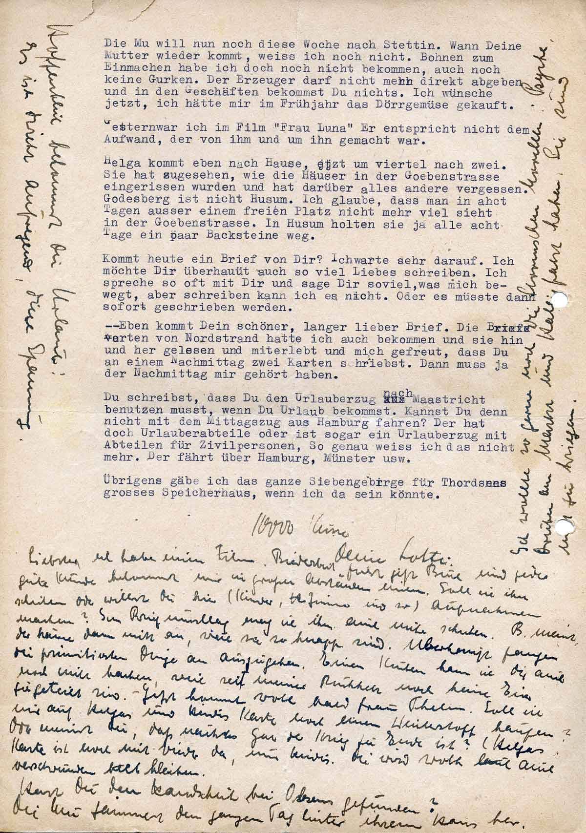 Eben kommt Dein schöner, langer Brief. Die Karten von Nordstrand hatte ich auch bekommen und sie hin und her gelesen und miterlebt und mich gefreut, dass Du an einem Nachmittag zwei Karten schriebst. Dann muss ja der Nachmittag mir gehört haben.
