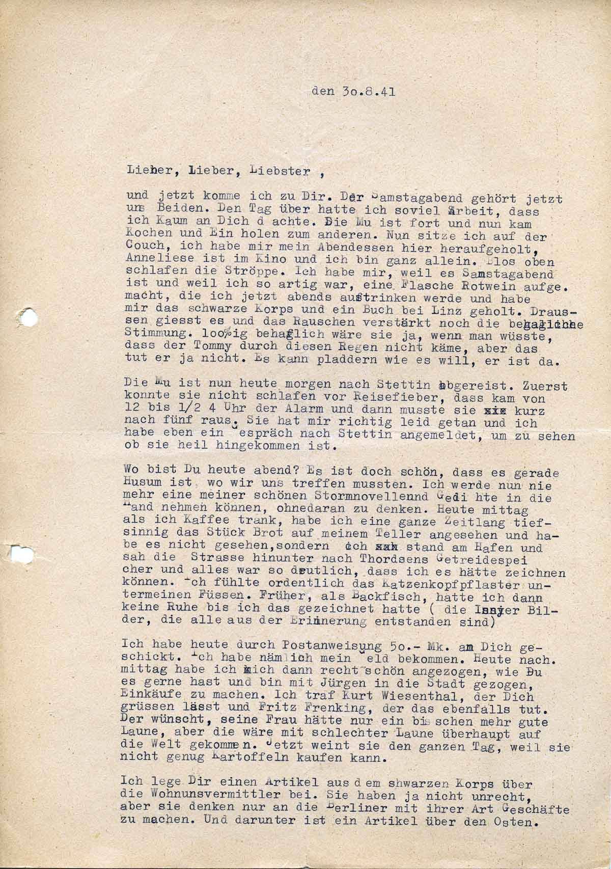 Charlotte Endemann an ihren Mann Harald, 30. August 1941