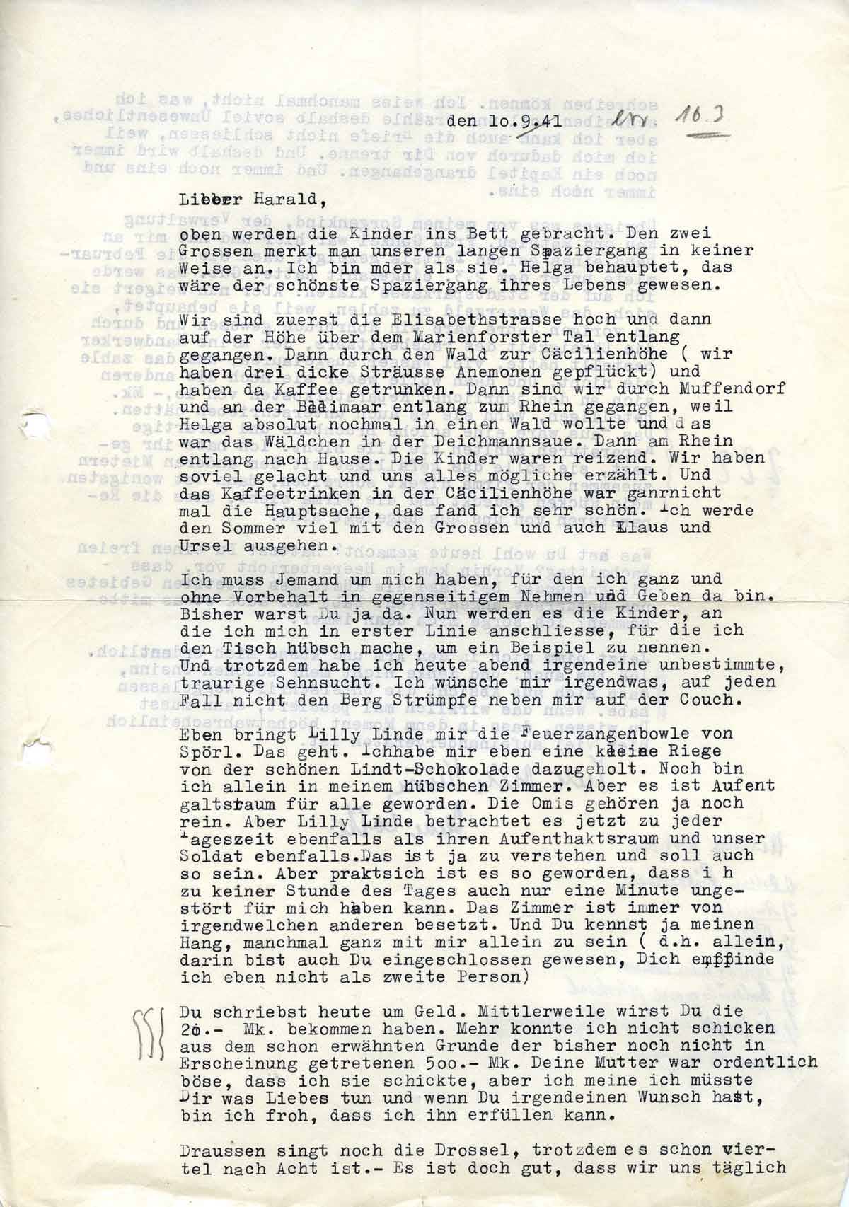 Charlotte Endemann an ihren Mann Harald, 10. September 1941