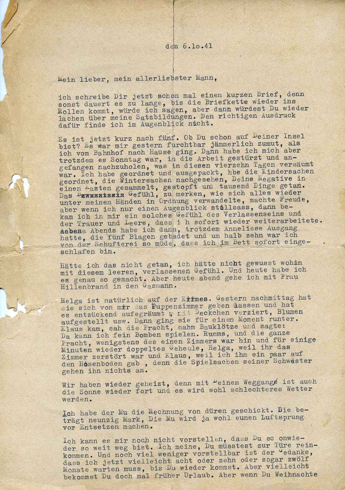 Charlotte Endemann an ihren Mann Harald, 6. Oktober 1941
