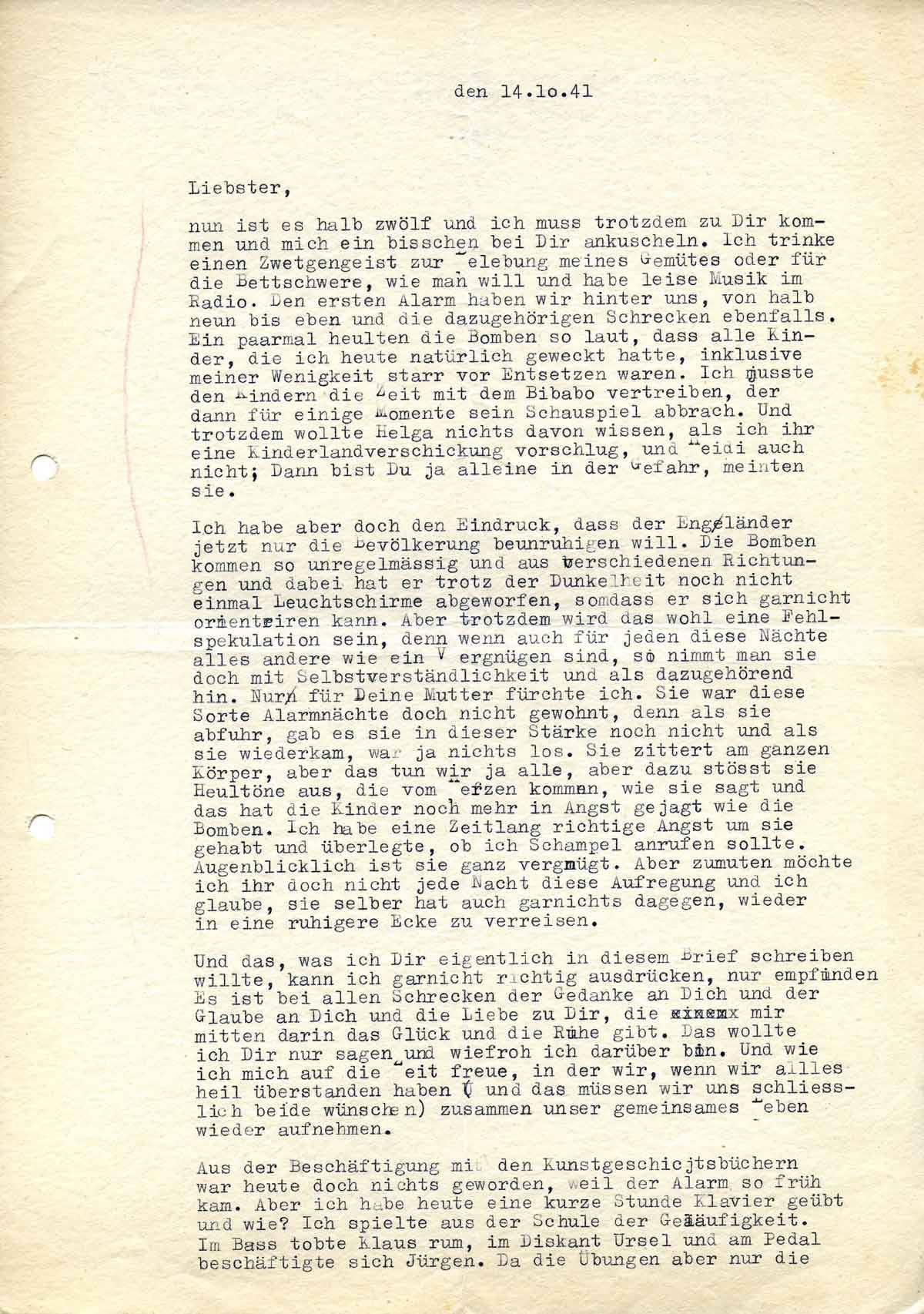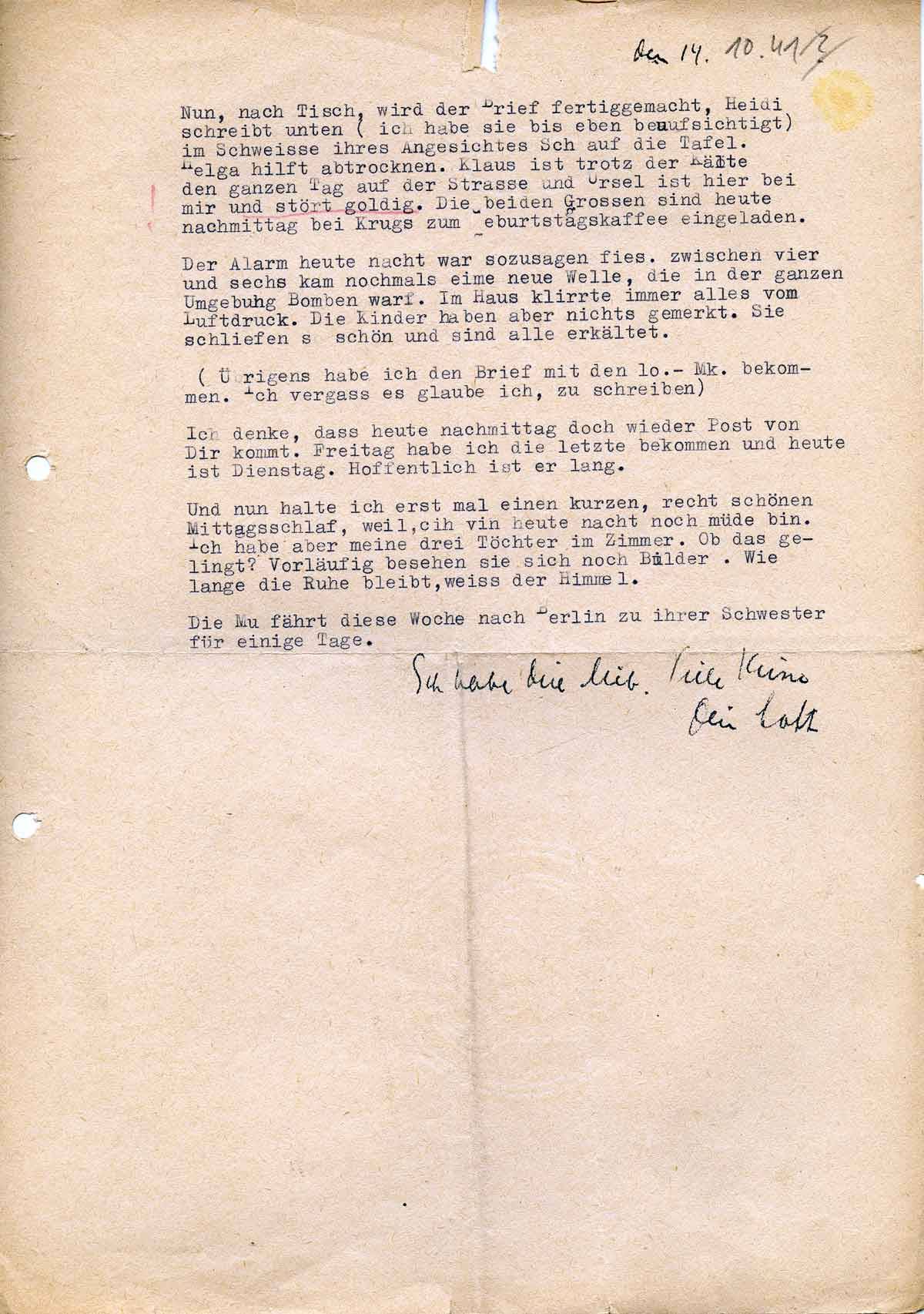 Charlotte Endemann an ihren Mann Harald, 14. Oktober 1941