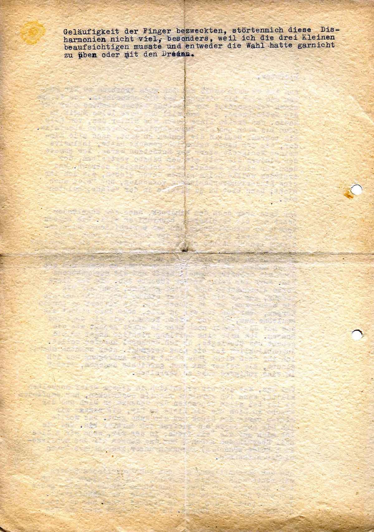 Aus der Beschäftigung mit den Kunstgeschichtsbüchern war heute doch nichts geworden, weil der Alarm so früh kam. Aber ich habe heute eine kurze Stunde Klavier geübt und wie! Ich spielte aus der ´Schule der Geläufigkeit´. Im Bass tobte Klaus rum, im Diskant Ursel, und am Pedal beschäftigte sich Jürgen. Da die Übungen aber nur die