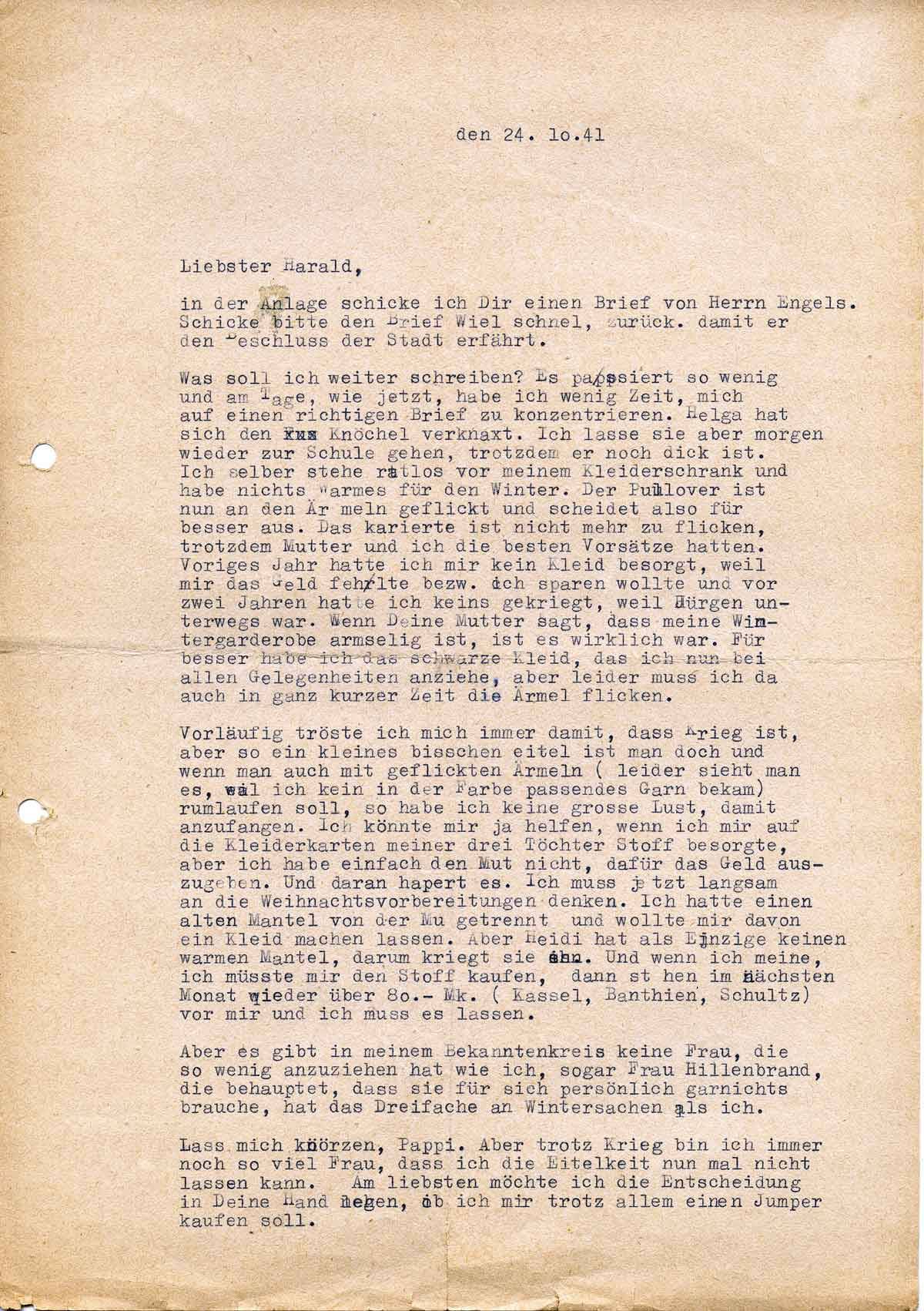 Charlotte Endemann an ihren Mann Harald, 24. Oktober 1941