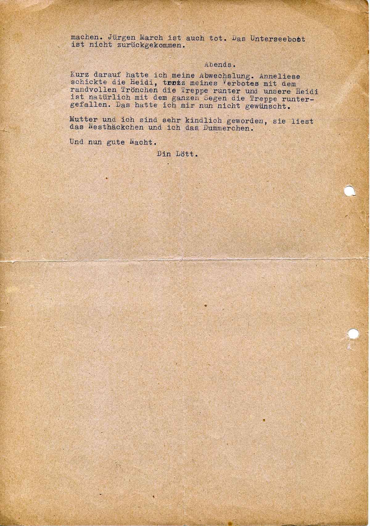 Mutter und ich sind sehr kindlich geworden. Sie liest Nesthäkchen und ich das Dummerchen. Und nun gute Nacht! Din Lött