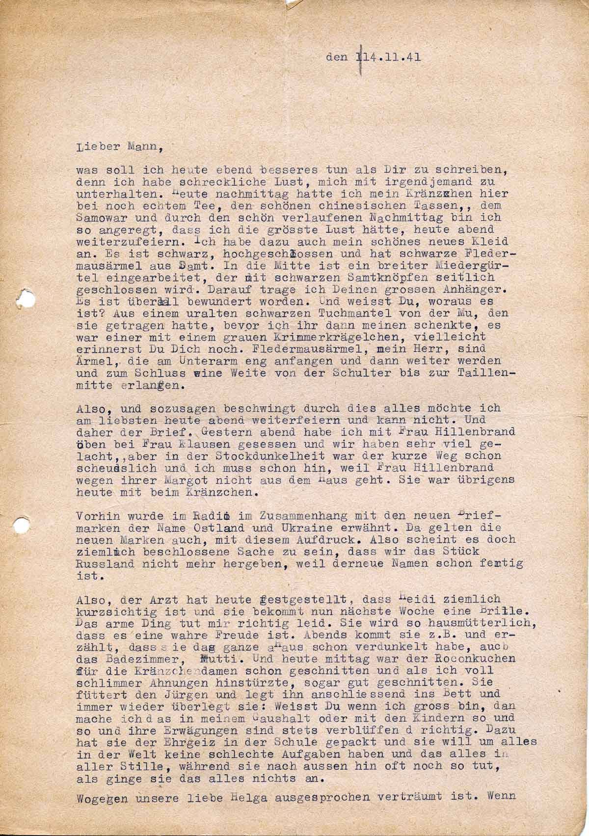 Charlotte Endemann an ihren Mann Harald, 14. November 1941