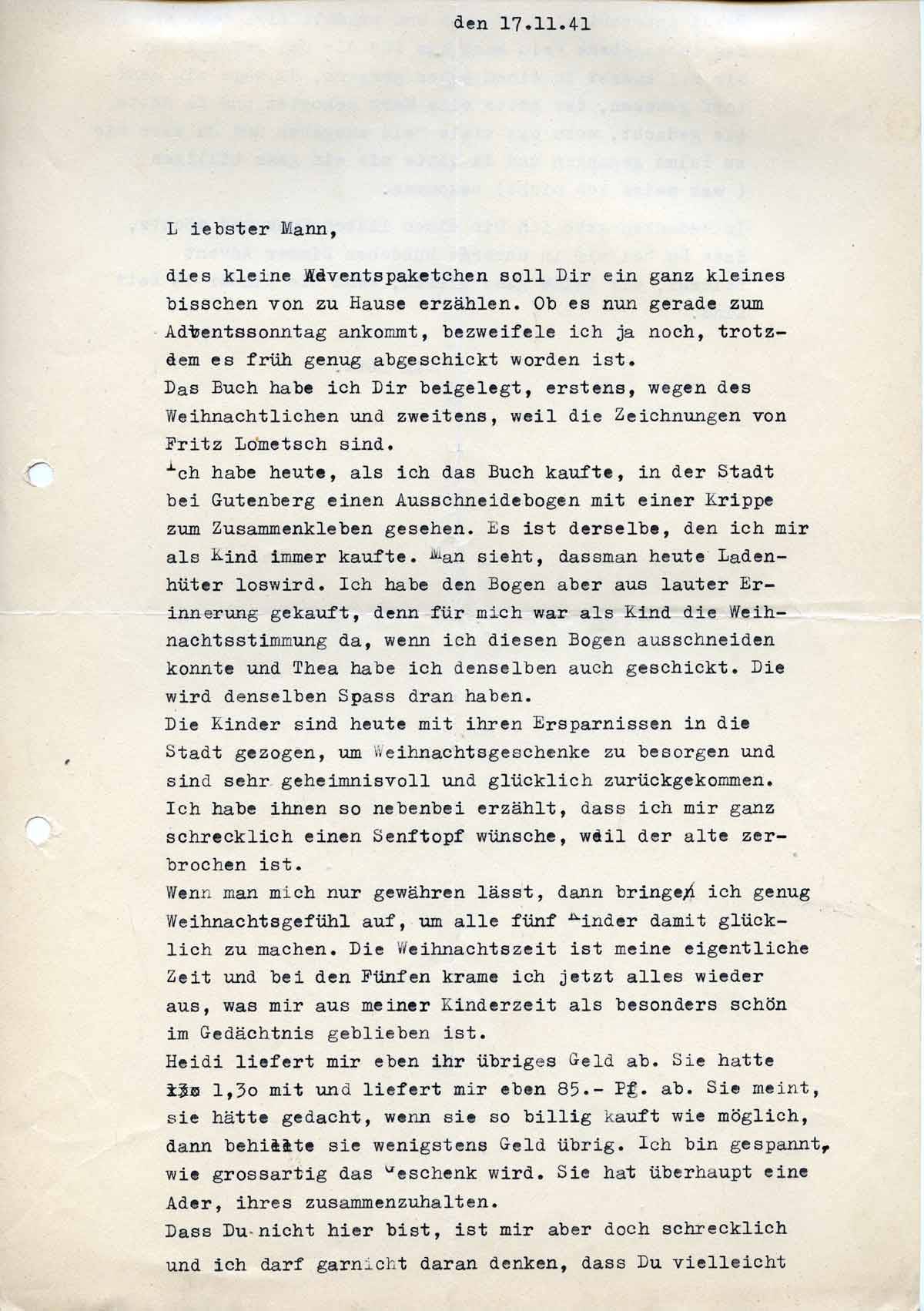 Charlotte Endemann an ihren Mann Harald, 17. November 1941