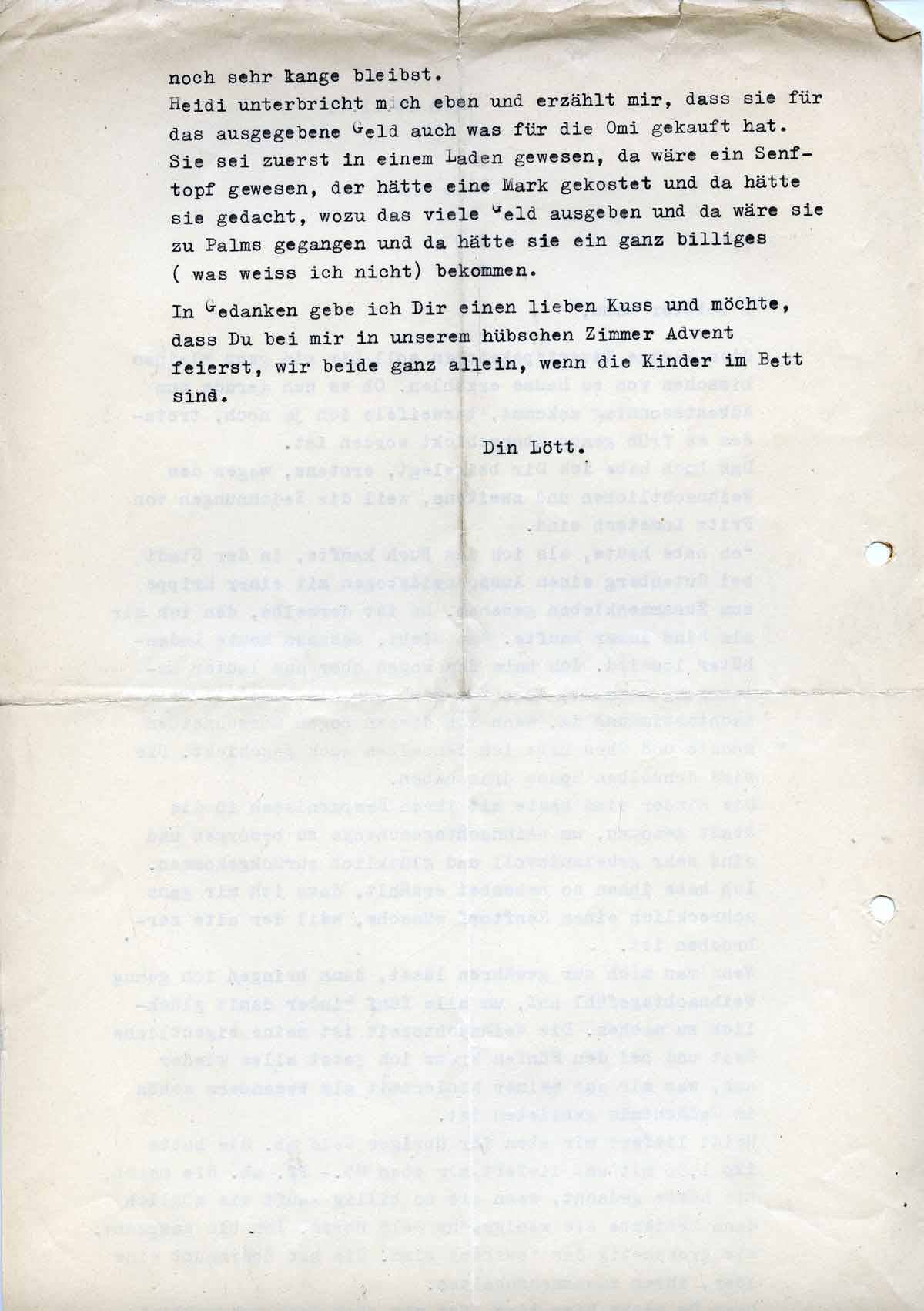 In Gedanken gebe ich Dir einen lieben Kuss und möchte, dass Du bei mir bist und in unserem hübschen Zimmer Advent feierst, wir beide ganz allein, wenn die Kinder im Bett sind. Din Lött.