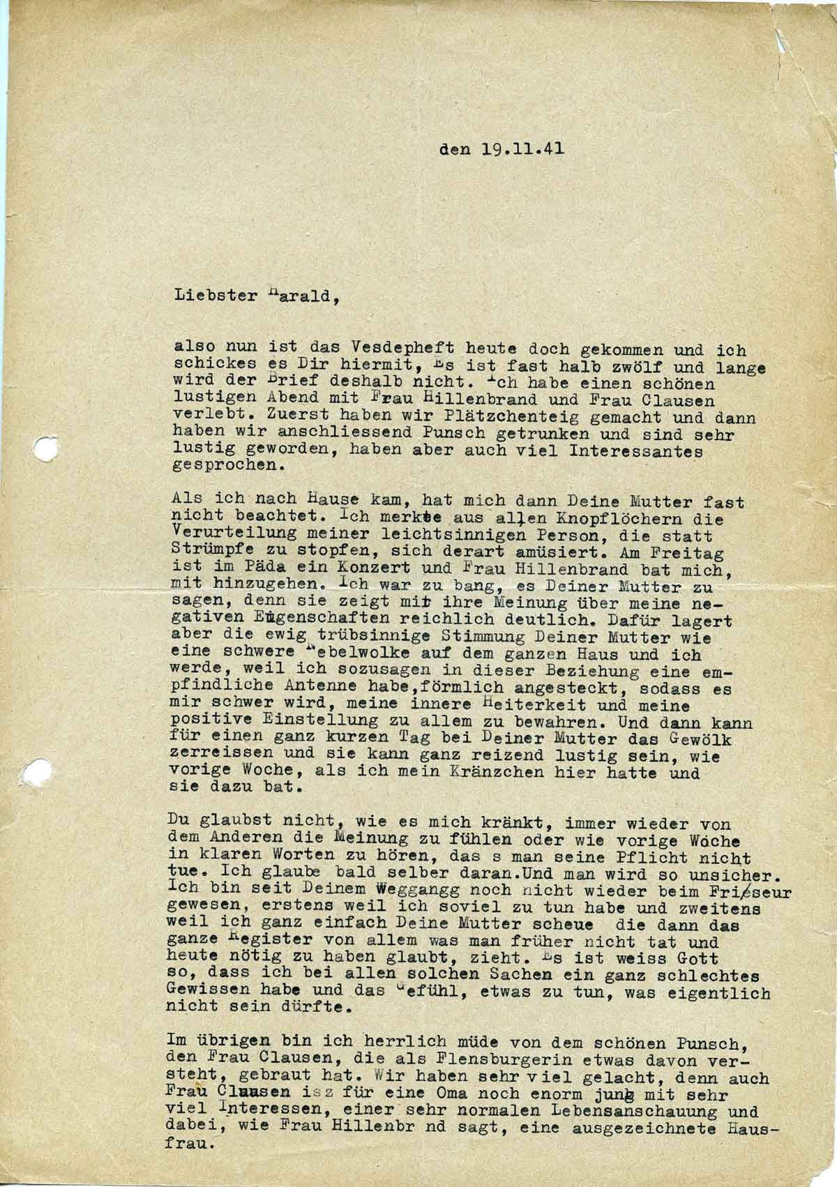 Charlotte Endemann an ihren Mann Harald, 19. November 1941