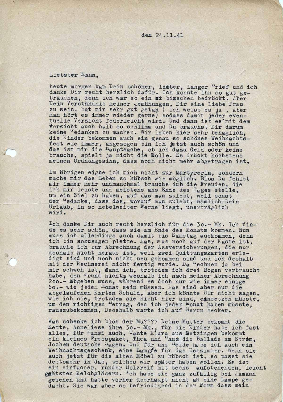Charlotte Endemann an ihren Mann Harald, 24. November 1941