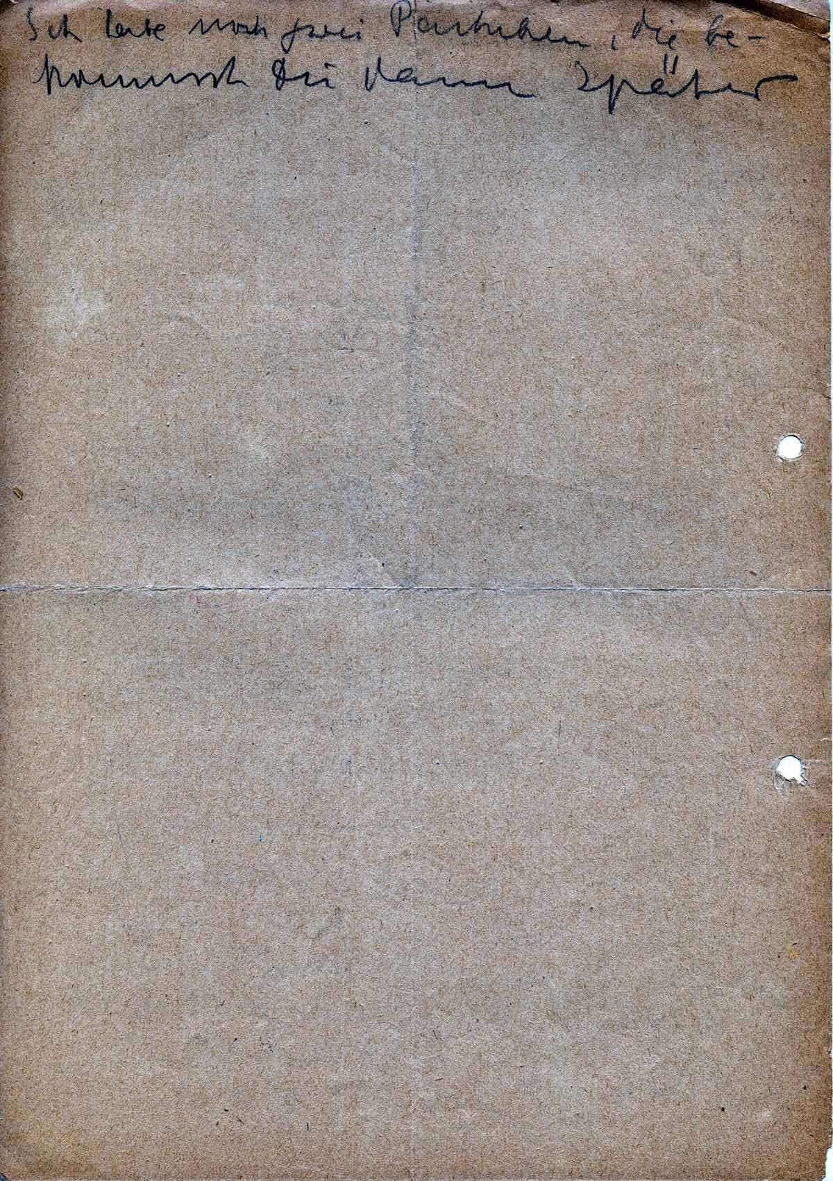 Ich habe in das Fresspaket nur ein Päckchen Zigaretten getan, weil Du pakete von Thea, Hansi, Lenchen, Kruschner, Bussmann bekommst, die sicher alle Zigaretten schicken. Ottos haben auch 10 Päckchen Zigaretten drin. Und ich kann nicht so viel sammeln, weil ich nur alle 4 Tage 5 Stück bekomme!