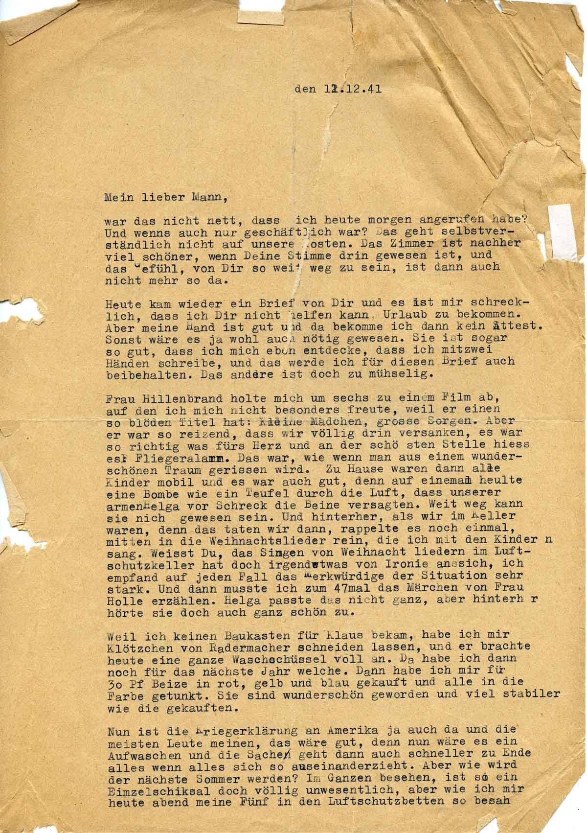 Charlotte Endemann an ihren Mann Harald, 11. Dezember 1941