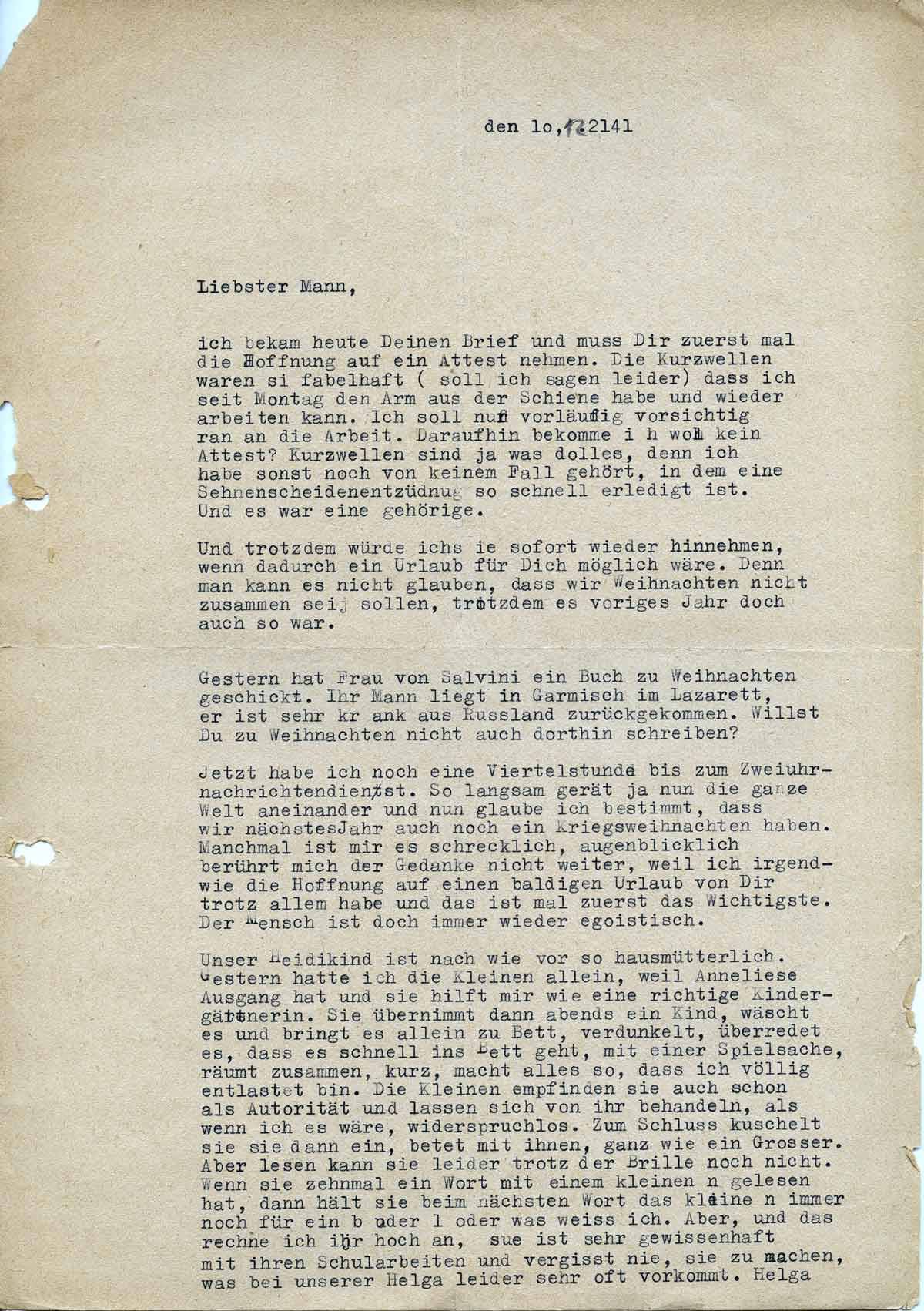 Charlotte Endemann an ihren Mann Harald, 10. Dezember 1941