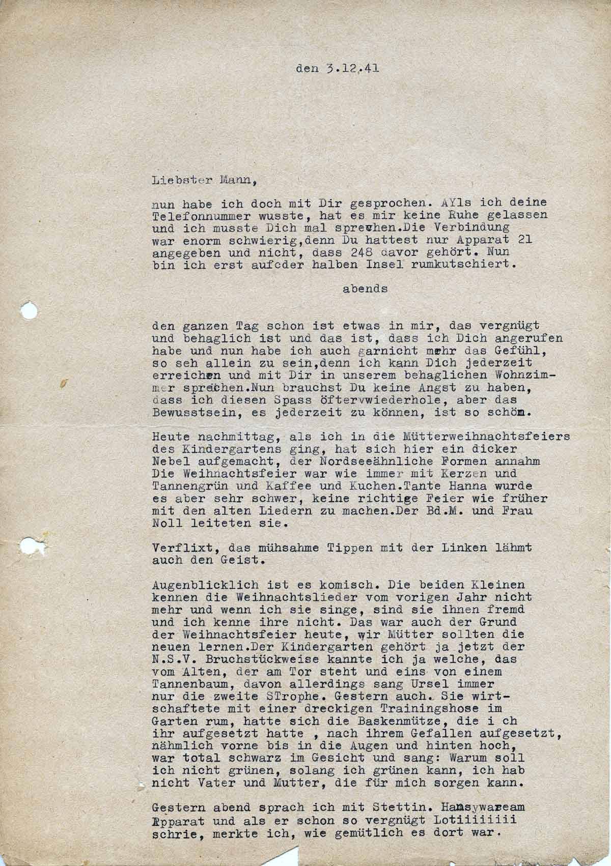Charlotte Endemann an ihren Mann Harald, 3. Dezember 1941