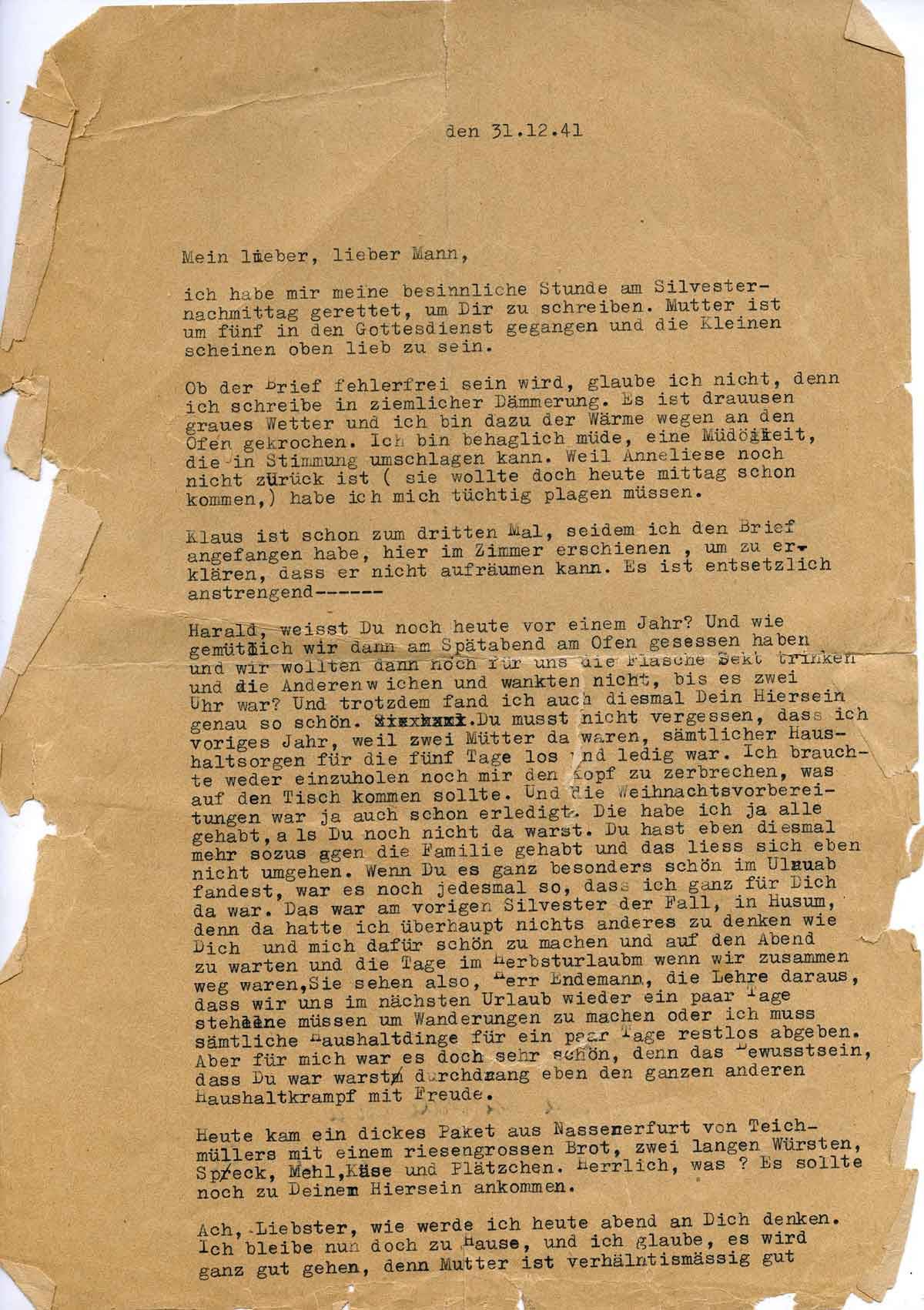 Charlotte Endemann an ihren Mann Harald, 31. Dezember 1941
