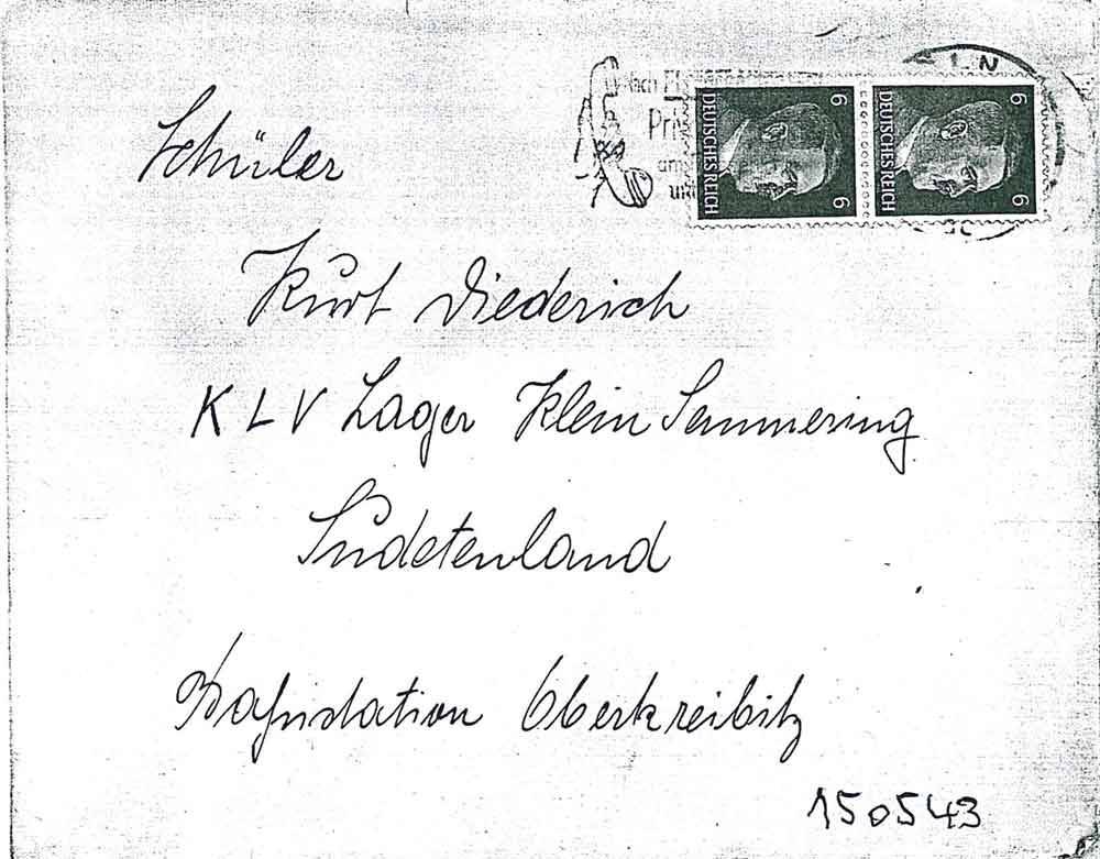 So mein lieber Kurt nun muß ich Schluß machen. Hansi schreibt Dir auch einen Brief. Er wollte Deine Adresse haben. Morgen früh fährt Papa in Ferien für 8 Tage, dann wird er Dir auch mal schreiben. Sei nun schön brav und schreib recht bald wieder. Du mußt nur den Ort und das Datum immer bei schreiben.