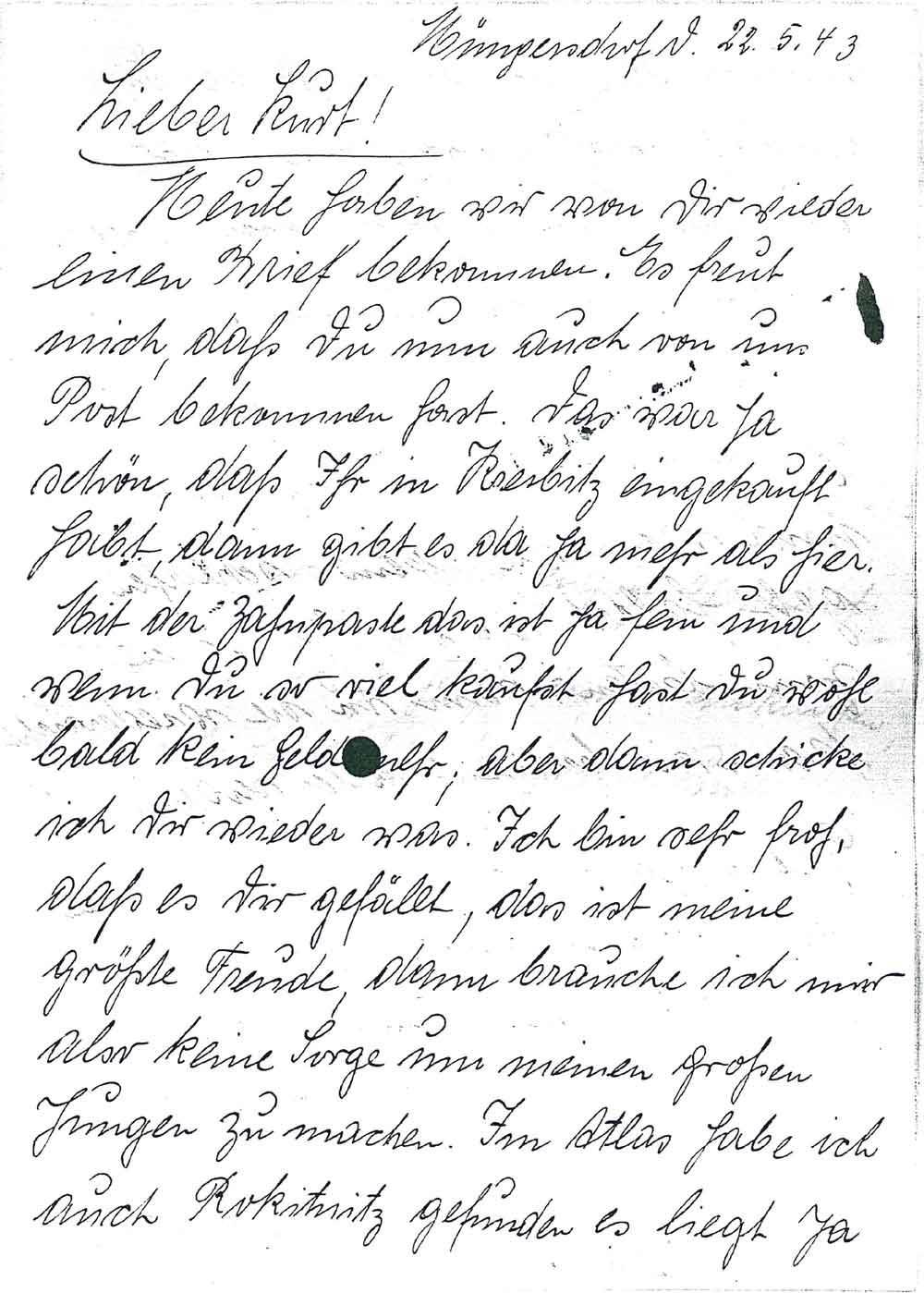 Familie Diederich an Sohn Kurt, 22. Mai 1943