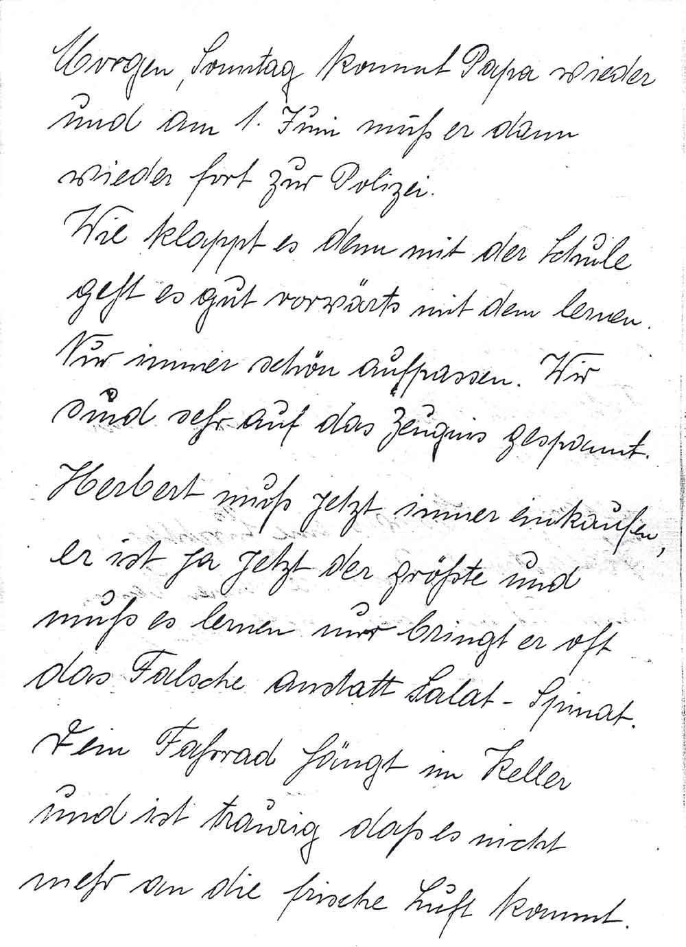 So lieber Kurt nun muß ich schließen. Sei schön brav und laß Dich grüßen von Mutter, Herbert und Gisela.