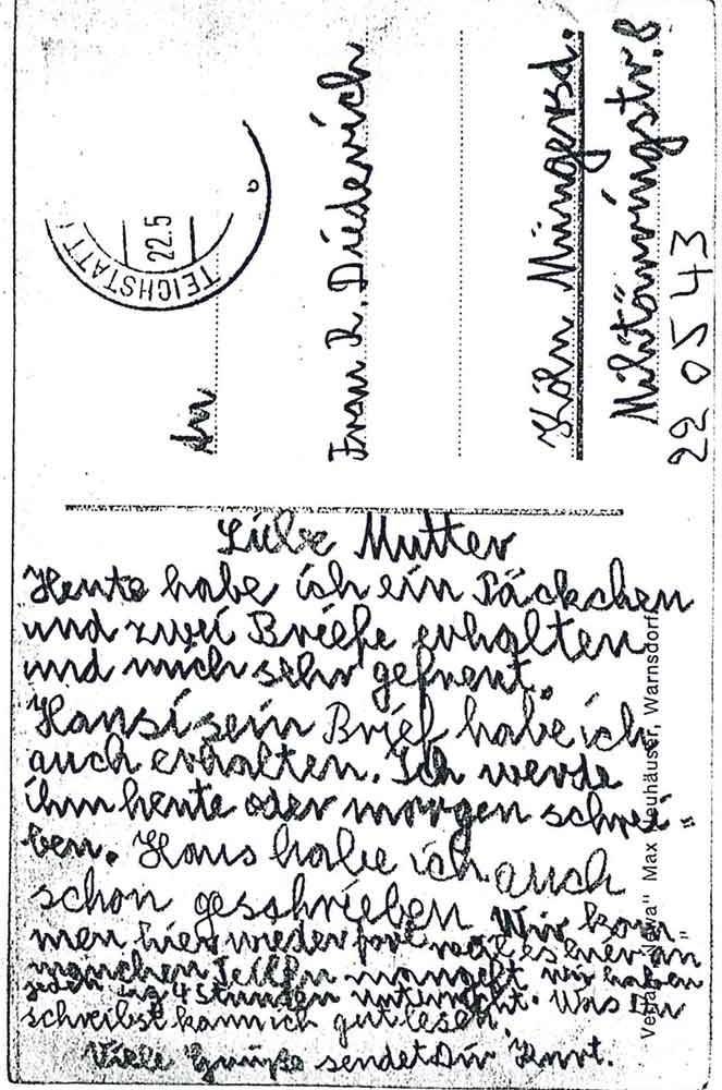 Kurt Diederich an seine Mutter, 22. Mai 1943