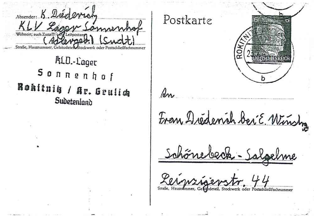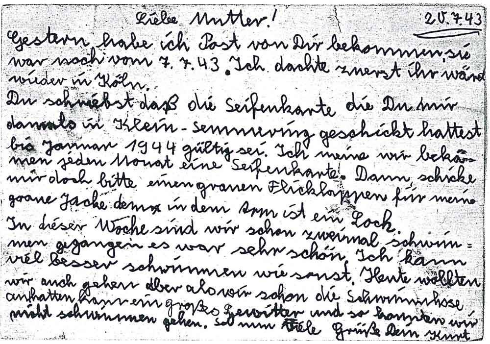 Gestern habe ich Post von Dir bekommen sie war noch vom 7.7.43. Ich dachte zuerst ihr wäret wieder in Köln.