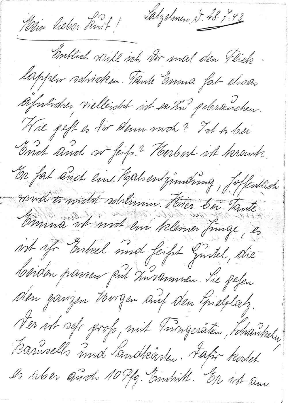 Mutter Diederich an Sohn Kurt, 28. Juli 1943