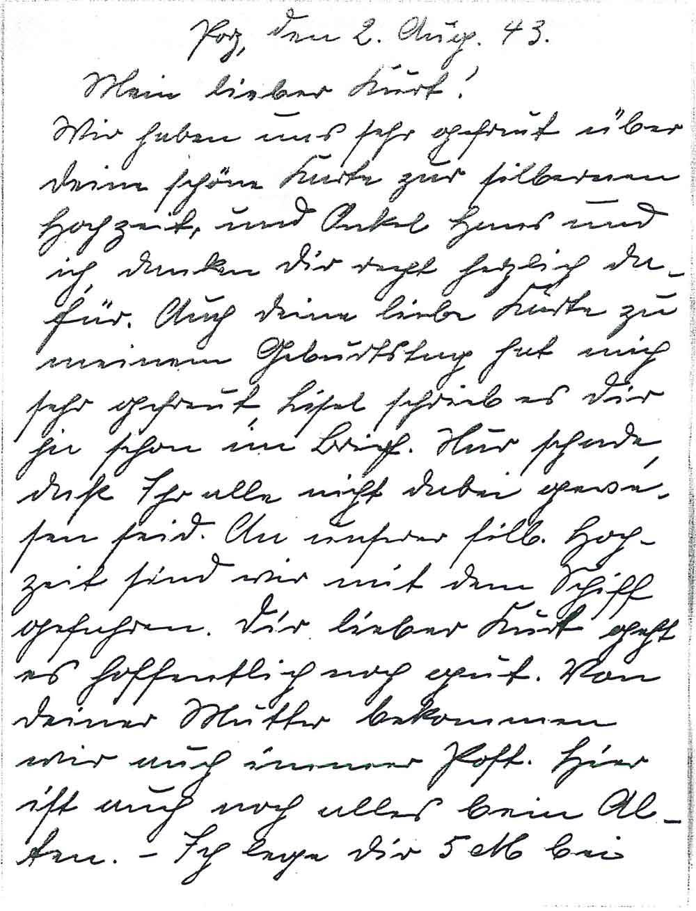 Tante Mili an Kurt Diederich, 2. August 1943