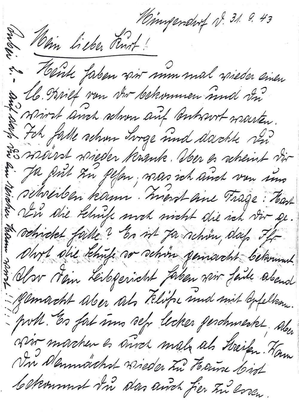 Familie Diederich an Sohn Kurt, 30. September 1943