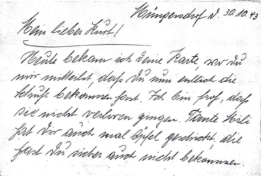 Mutter Diederich an Sohn Kurt, 30. Oktober 1943