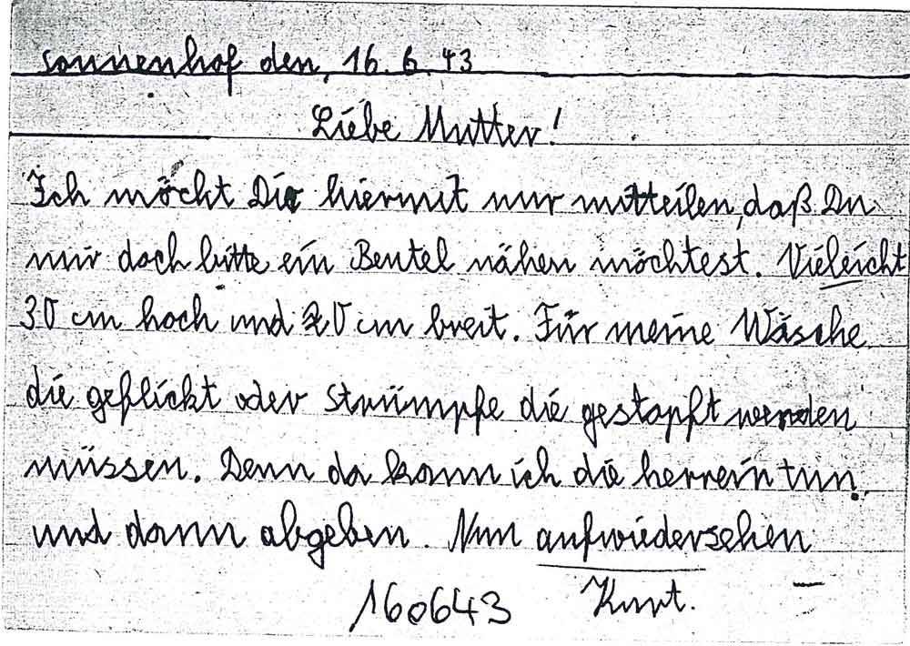 Kurt Diederich an seine Mutter, 16. Juni 1943