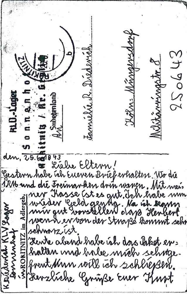Kurt Diederich an seine Eltern, 25. Juni 1943