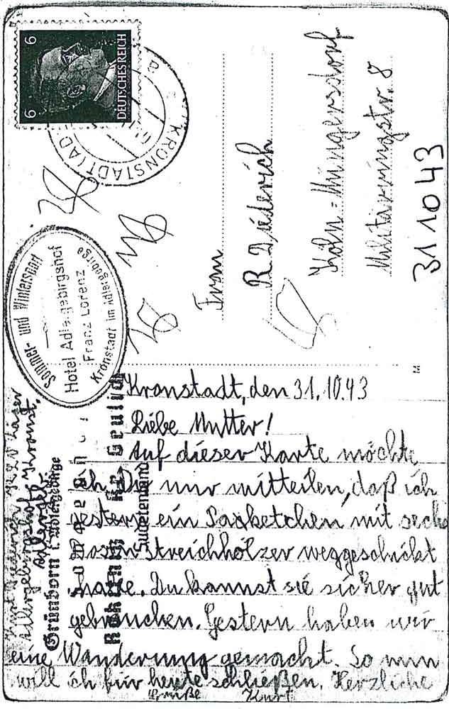 Kurt Diederich an seine Mutter, 31. Oktober 1943