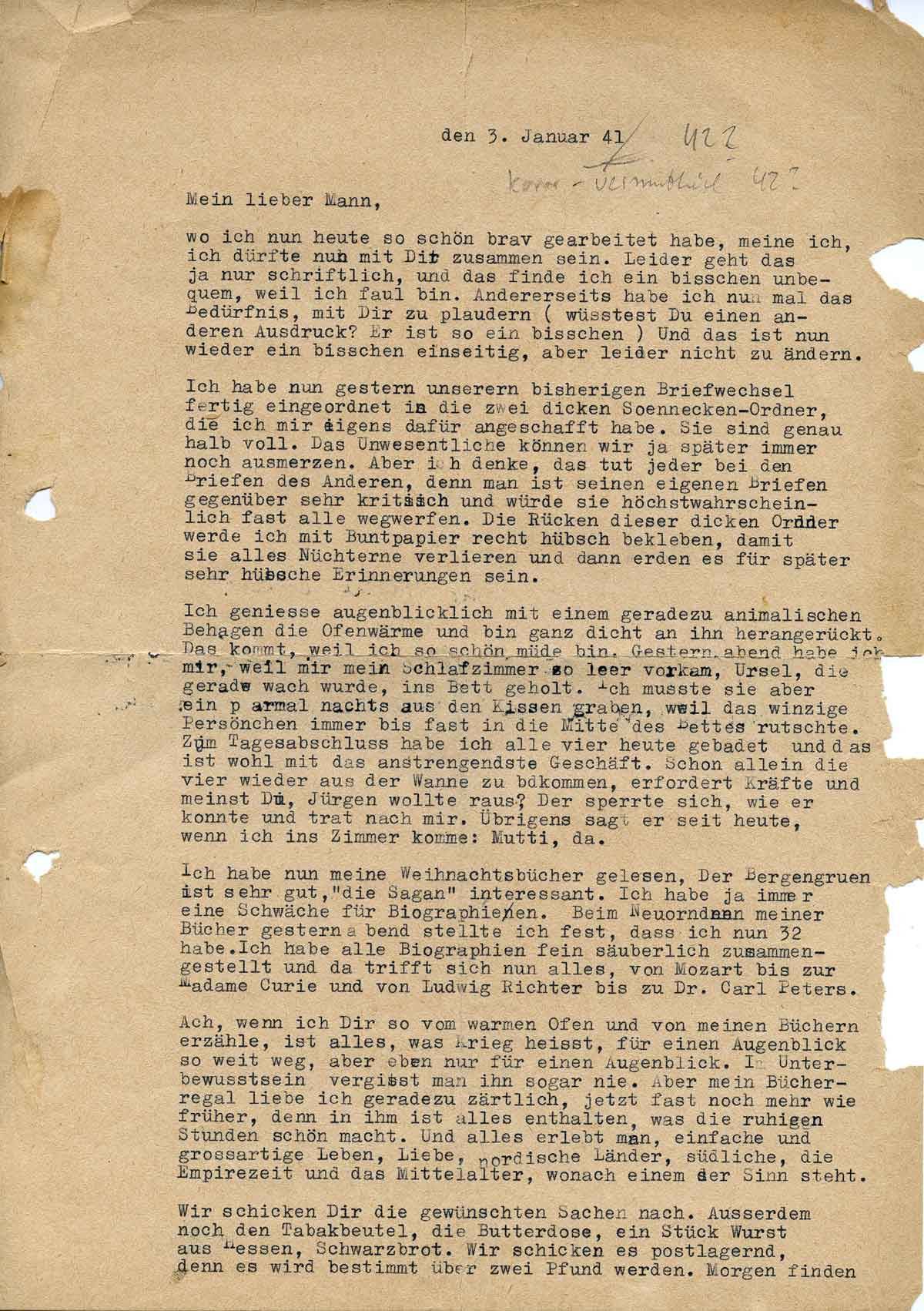 Charlotte Endemann an ihren Mann Harald, 3. Januar 1942