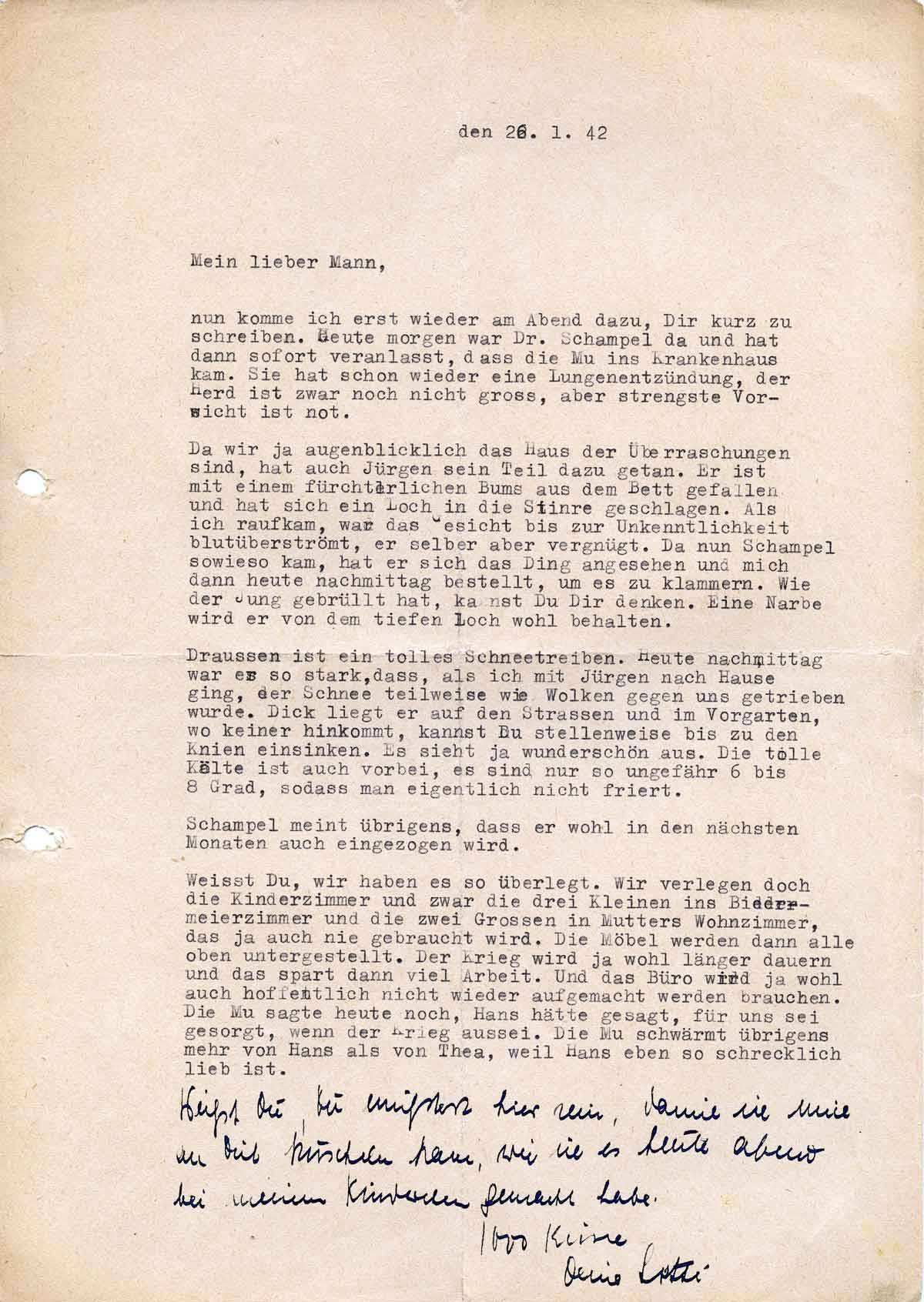Charlotte Endemann an ihren Mann Harald, 26. Januar 1942