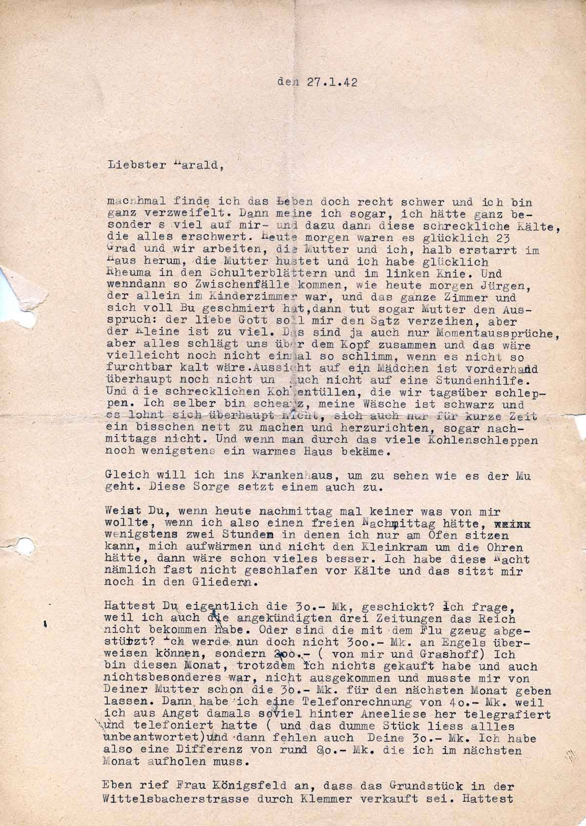 Charlotte Endemann an ihren Mann Harald, 27. Januar 1942
