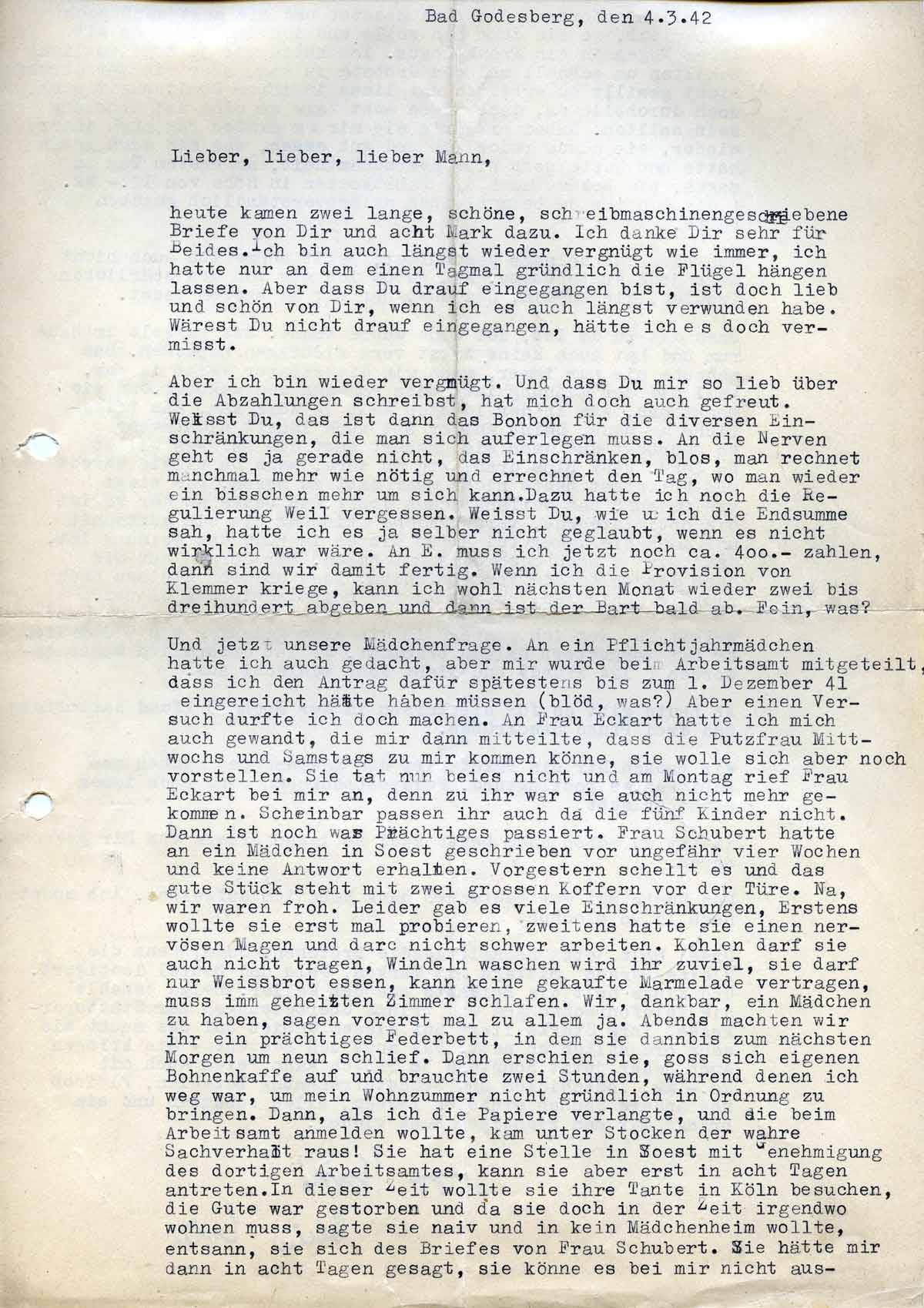 Charlotte Endemann an ihren Mann Harald, 4. März 1942
