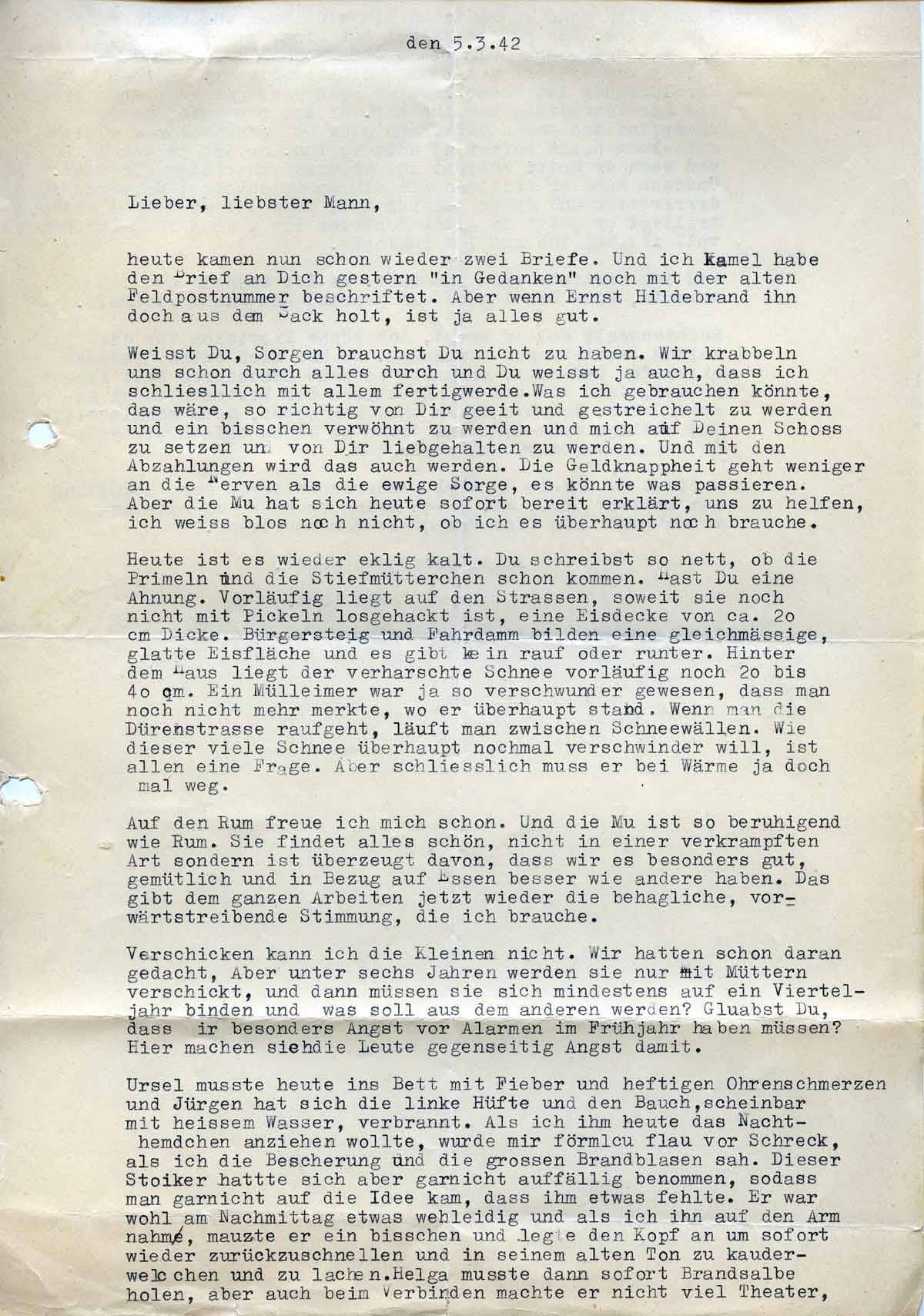 Charlotte Endemann an ihren Mann Harald, 5. März 1942