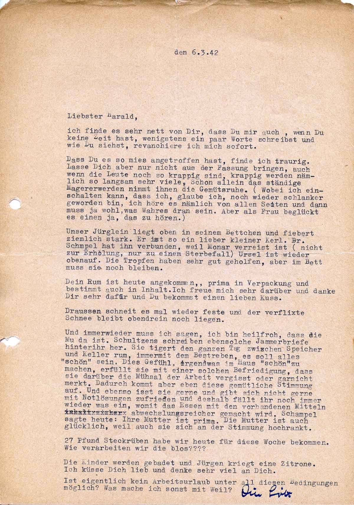 Charlotte Endemann an ihren Mann Harald, 6. März 1942