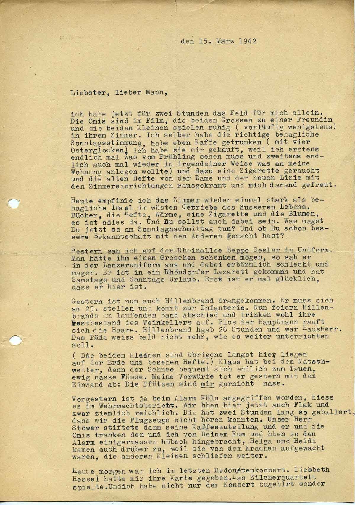 Charlotte Endemann an ihren Mann Harald, 15. März 1942