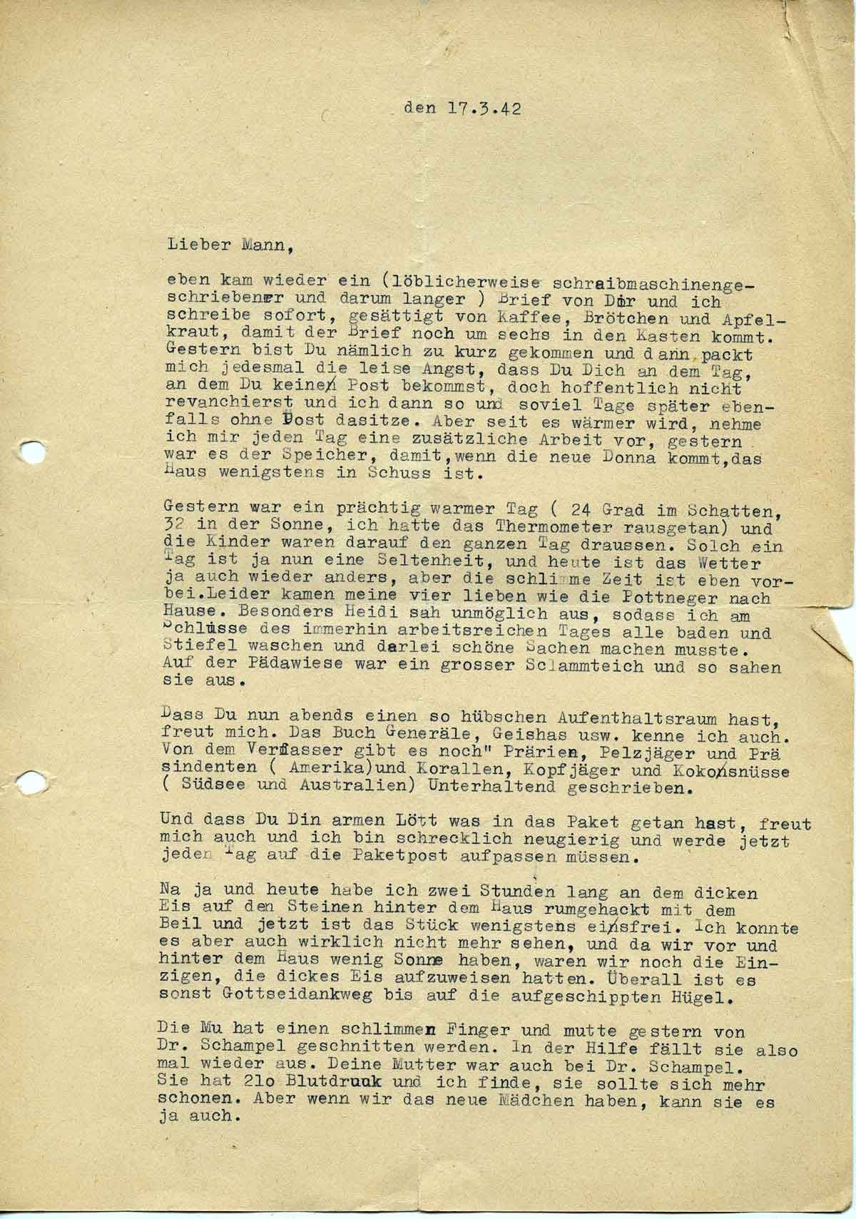 Charlotte Endemann an ihren Mann Harald, 17. März 1942