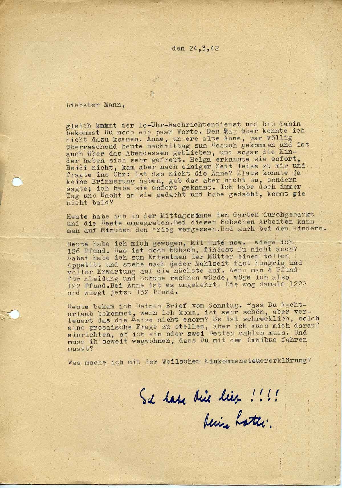 Charlotte Endemann an ihren Mann Harald, 24. März 1942