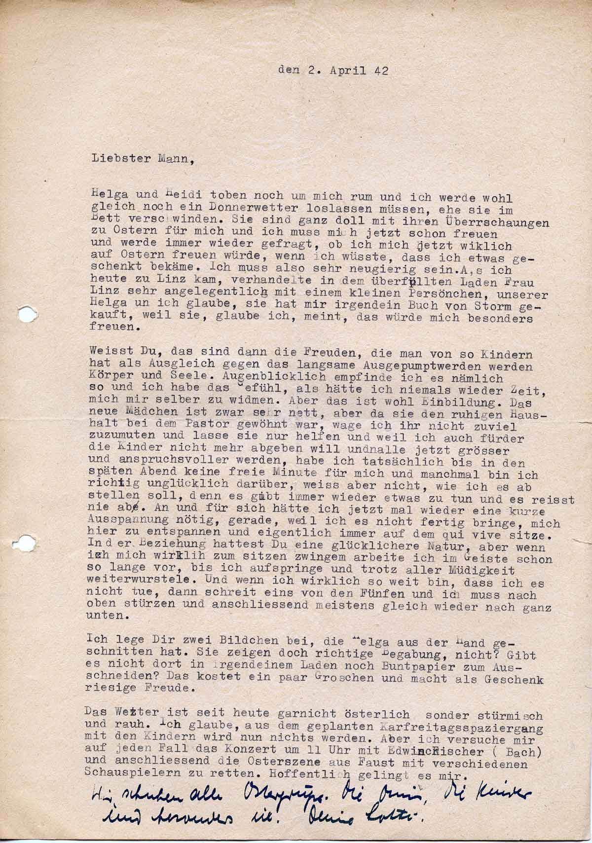 Charlotte Endemann an ihren Mann Harald, 2. April 1942