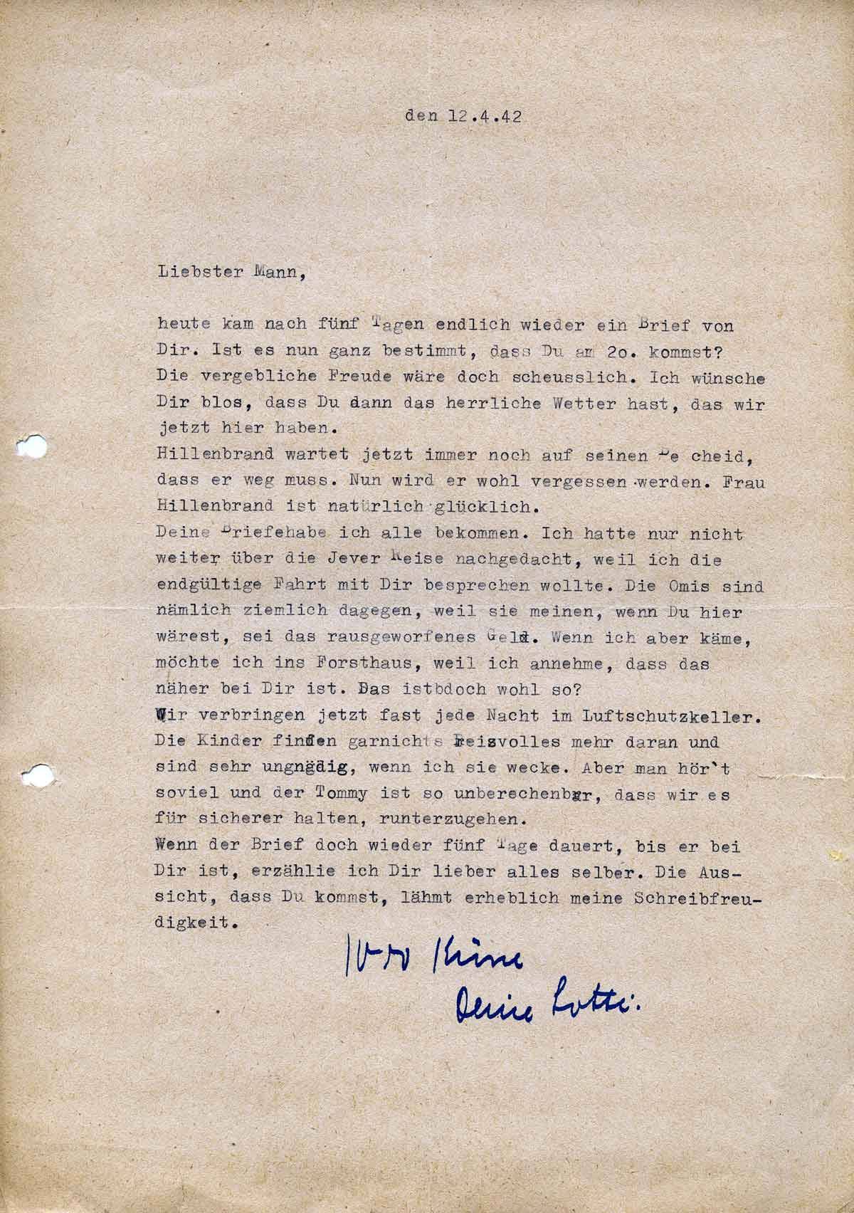 Charlotte Endemann an ihren Mann Harald, 12. April 1942